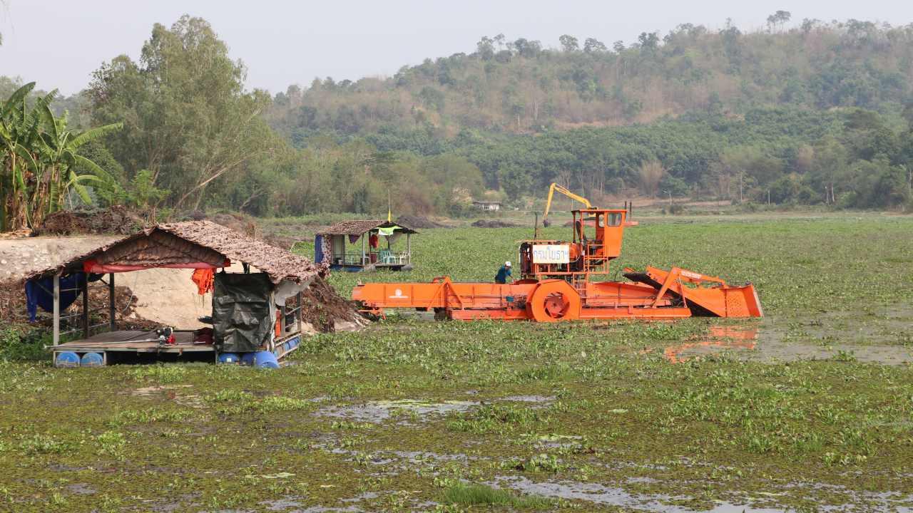 ฝนทิ้งช่วงนาน เชียงรายมีแต่ไอร้อน "อ่างหนองหลวง" แหล่งน้ำจืดสำคัญพื้นที่ร่วมหมื่นไร่แห้งขอด กลายเป็นพื้นโคลนเต็มไปด้วยวัชพืช ประปาขุ่นใกล้ขาดน้ำคน แถมท้ายอ่างแอบมาเปิดน้ำเข้านา สวนส้ม