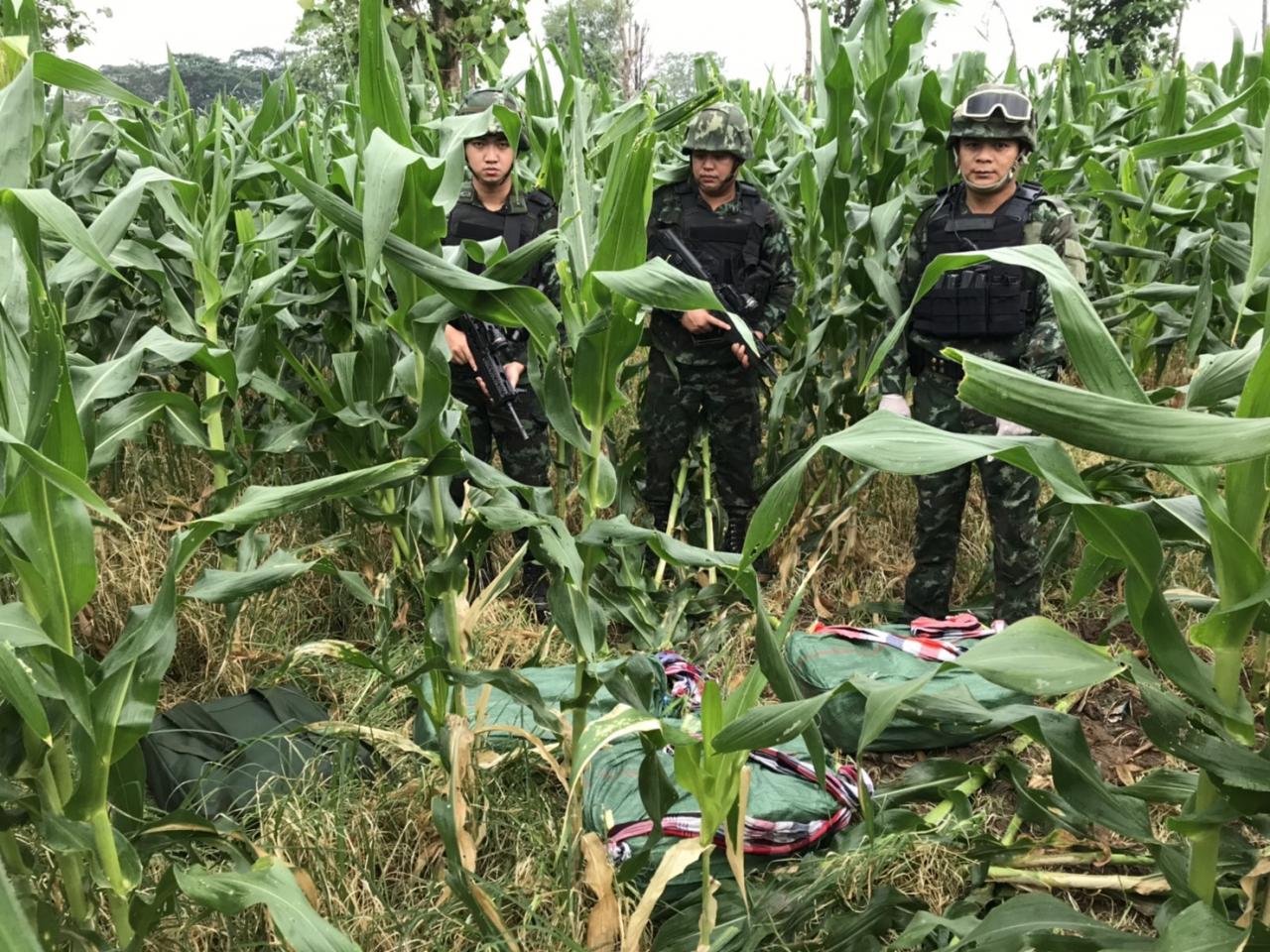 ใกล้กันพบศพที่ 3 เป็นชายสวมกางเกงขายาวสีดำ สวมเสื้อยืดสีดำ สะพายเป้ นอนตะแคงข้างต้นข้าวโพด และที่กลางไร่ข้าวโพด ริมแม่น้ำรวก พบศพที่ 4 เป็นชายสวมกางเกงวอร์มขาสั้นสีดำ ใส่เสื้อยืดสีน้ำเงินสวมทับด้วยเสื้อเชิ้ตแขนยาวลายสก็อต นอนคุดคู้สะพายเป้สีเขียว ที่ศพไม่มีหลักฐานชื่อที่อยู่ ตรวจสอบเป้ทั้งหมดบรรจุยาเคตามีน จำนวน 17 เป้ เป้ละ 20 กก. รวม 340 กก. และล่าสุดได้รับแจ้งจากทหารเมียนมาฝั่งตรงข้ามที่เกิดเหตุ พบกระสอบเป้บรรจุยาเคตามีนอีก 4 กระสอบ รวม 80 กก.