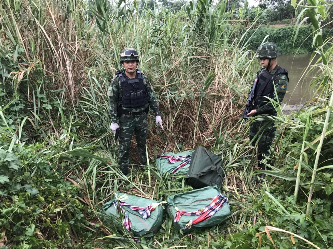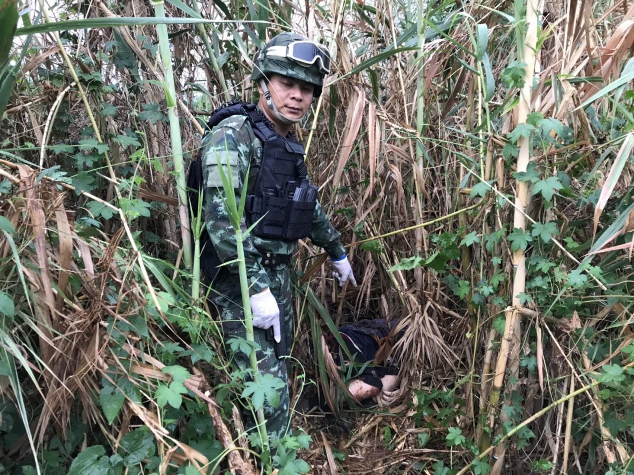 ผบ.กกล.ผาเมือง รุดดูจุดเกิดเหตุ ทหาร ฉก.ม.2 ยิงปะทะแก๊งค้ายาเสพติด ดับ 4 ศพ พบยาเคตามีน 17 เป้ หนัก 340 กก. บริเวณป่าข้าวโพด ริมแม่น้ำรวก บ้าป่าแดง อ.แม่สาย ขณะเดียวกันได้รับแจ้งจากทหารพม่า พบยาเคอีก 4 กระสอบ