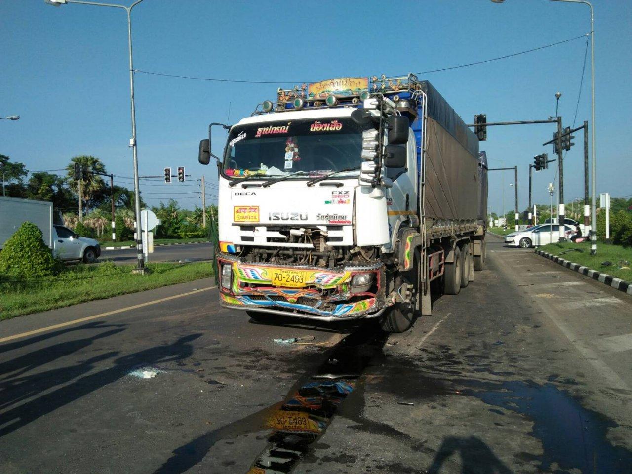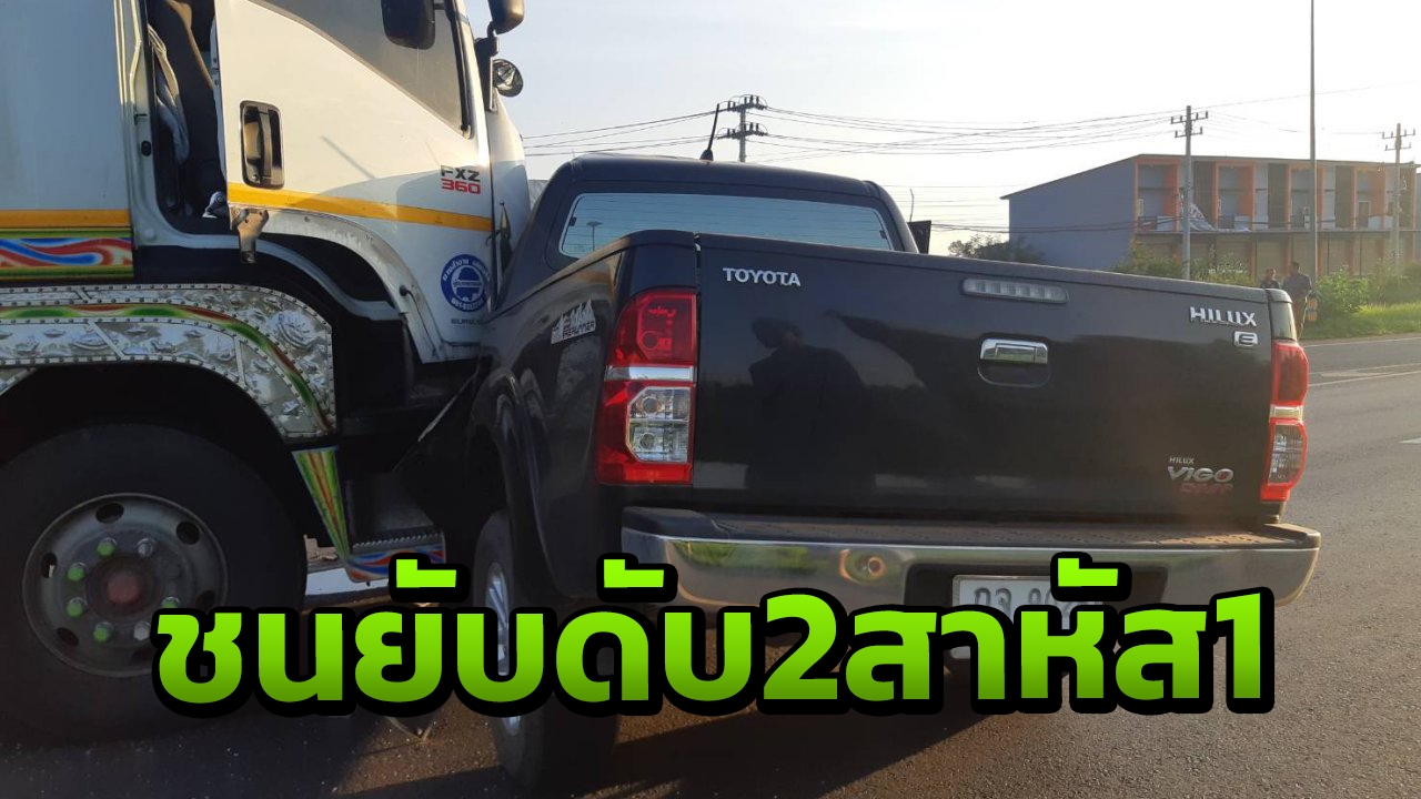 รถพ่วง 18 ล้อ ชนกระบะกลางสี่แยกโคกตาล บนถนนสายโชคชัย-เดชอุดม เขต อ.ขุขันธ์ จ.ศรีสะเกษ เสียชีวิต 2 ศพที่โรงพยาบาล ขณะที่ผู้ใหญ่บ้านที่นั่งมาด้วยบาดเจ็บสาหัส...