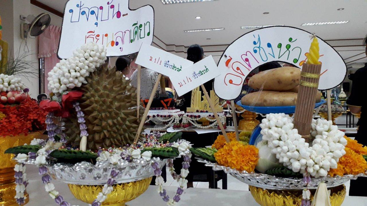 นอกจากนี้ยังมีพานแสดงความระลึกถึงคุณของครู ผู้ที่อบรมสั่งสอนศิษย์ให้เป็นคนดี เปรียบดังครูเหมือนเรือจ้างที่จะต้องพายพาลูกศิษย์ส่งให้ถึงฝั่ง และยังมีพานที่ทำจากดอกไม้เป็นรูปแบบต่างๆ สวยสดงดงามตามไอเดียของเด็กๆ นักเรียนอีกด้วย.