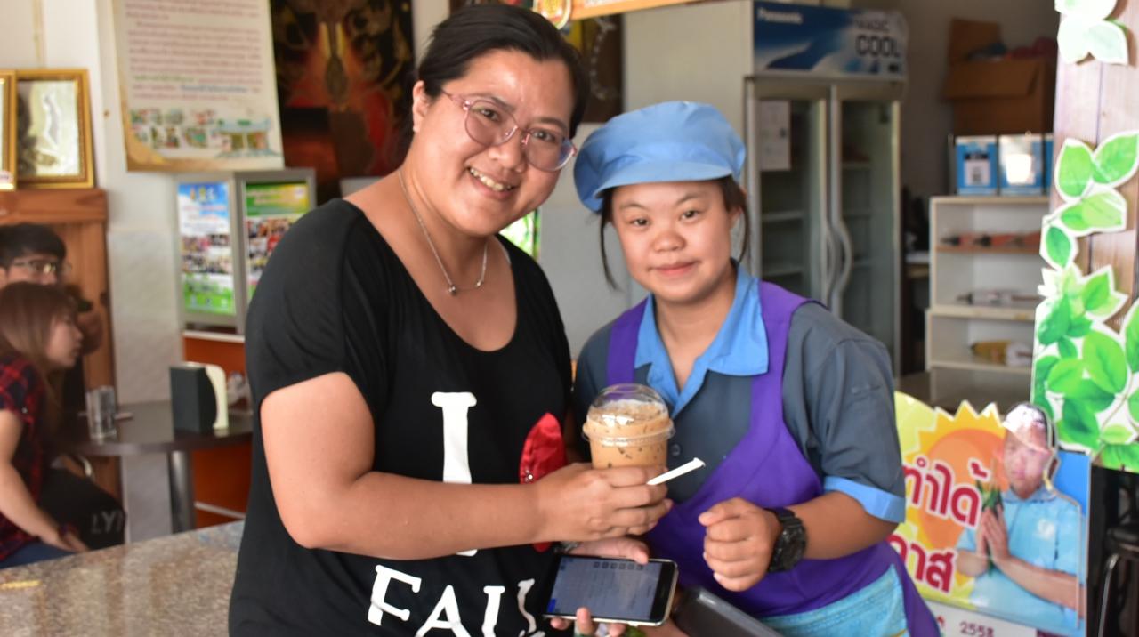 วันนี้ (28 มิ.ย.) ผู้สื่อข่าวไทยรัฐจึงได้ไปที่ร้านดังกล่าว นอกจากขายกาแฟสดแล้ว ยังมีงานฝีมือจากนักเรียนไปวางขาย ปรากฏว่าได้มีนักท่องเที่ยวที่ทราบข่าวแวะเวียนมาอุดหนุนและให้กำลังใจกับน้องๆ เด็กพิเศษจนแน่นร้าน จากปกติจะมีนักเรียนหญิงคอยบริการอยู่ 4 คน ในวันนี้ต้องเสริมเด็กนักเรียนมาเพิ่มอีก 5 คน คอยช่วยล้างถ้วยชามอยู่หลังร้าน