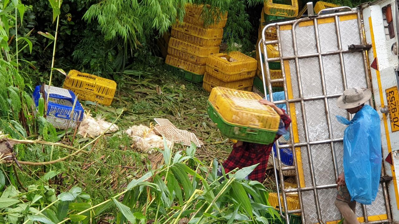 ที่เกิดเหตุพบคนงานกำลังลำเลียงลังไก่ที่กระจายในป่าข้างทาง ขึ้นมาถ่ายใส่รถกระบะ มีไก่ตายจำนวนมากเพราะลังถูกทับบี้แบน บางส่วนบินเข้าไปในป่าทึบข้างทาง ส่วนคนขับทราบชื่อนายสิทธิพร แช่มชื่น อายุ 23 ปี เป็นคนขับ ได้รับบาดเจ็บเล็กน้อย