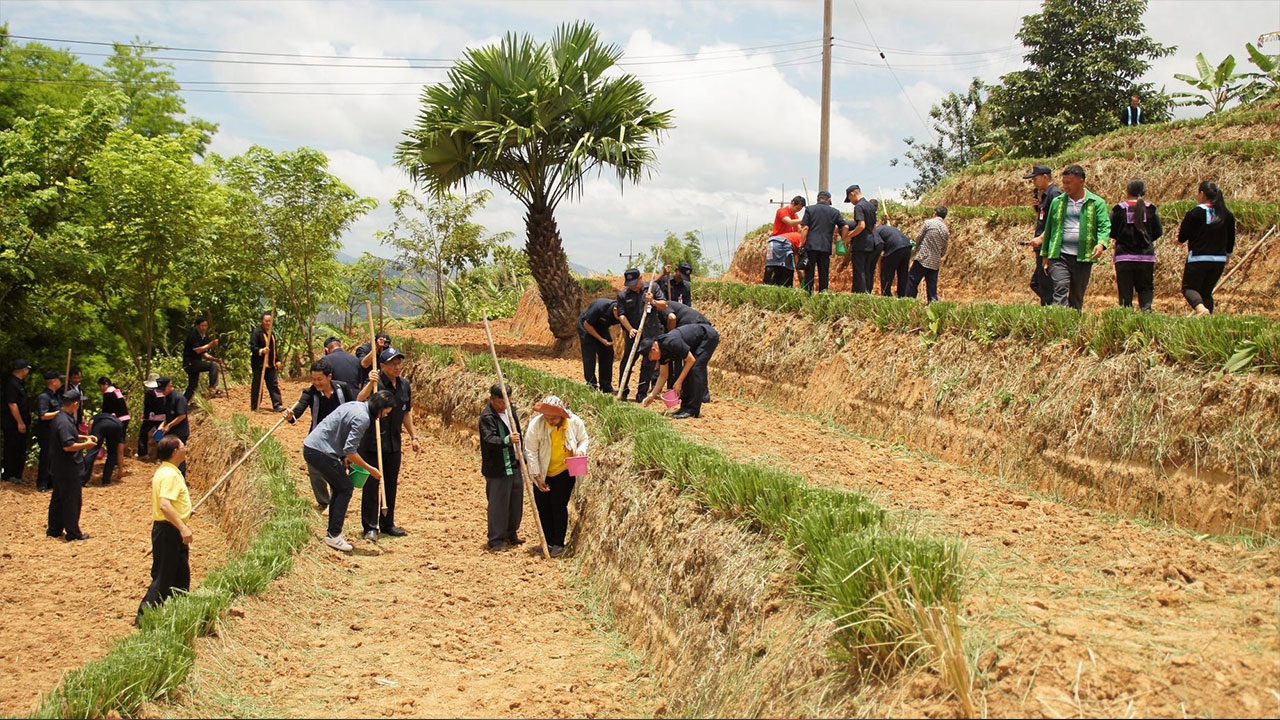 ร่วมลงแขกหยอดข้าวนาขั้นบันได หลังมีฝนตกต่อเนื่องในพื้นที่ ทำให้ดินมีความชื้นเพียงพอ