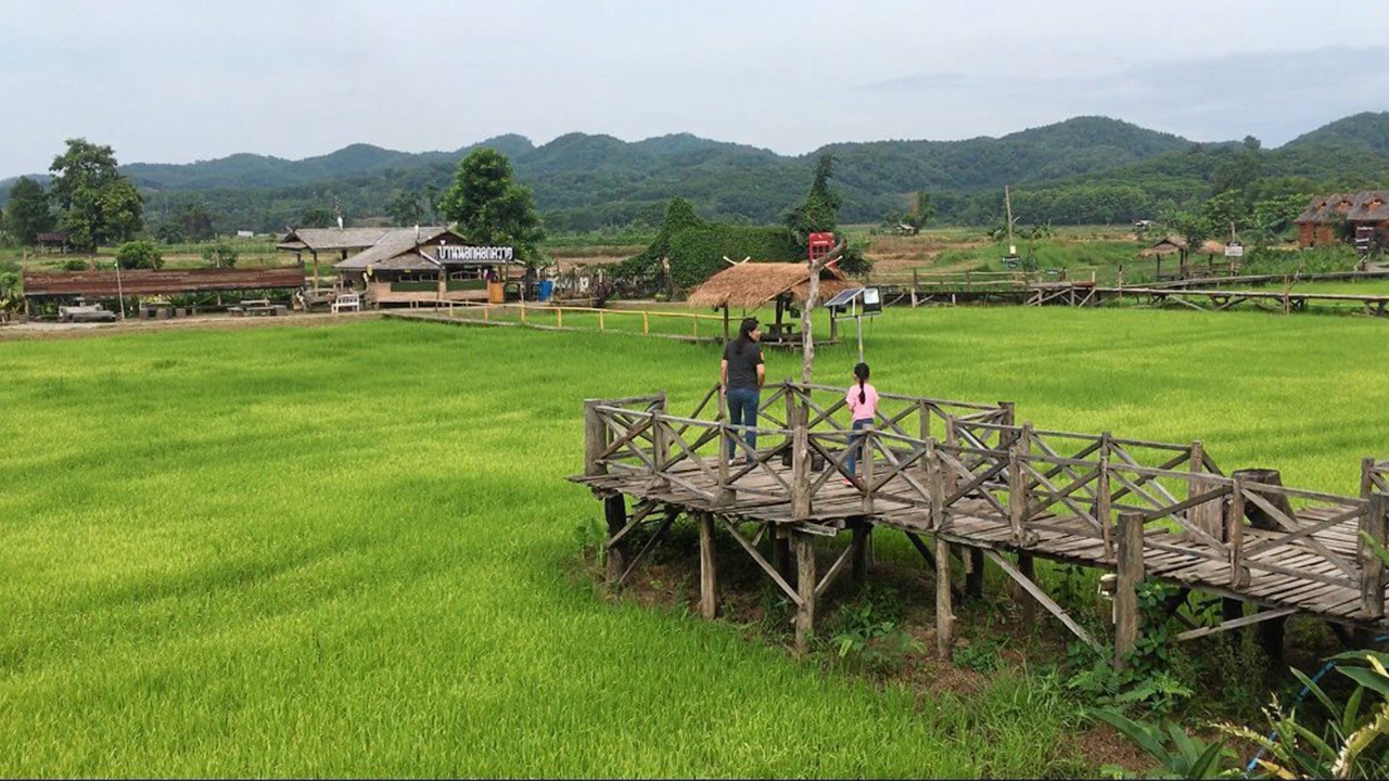 เนื่องจากตลาดตั้งอยู่กลางทุ่งนาริมถนนในหมู่บ้าน ถึงฤดูปักดำจะมองเห็นต้นข้าวเขียวขจี ขณะที่ด้านหลังตลาดมีฉากเป็นภูเขาที่มองดูสลับซับซ้อนสุดสวยงาม รวมทั้งมีบ้านวิถีชาวนาและมีโฮมสเตย์ให้เก็บภาพได้เป็นอย่างดี