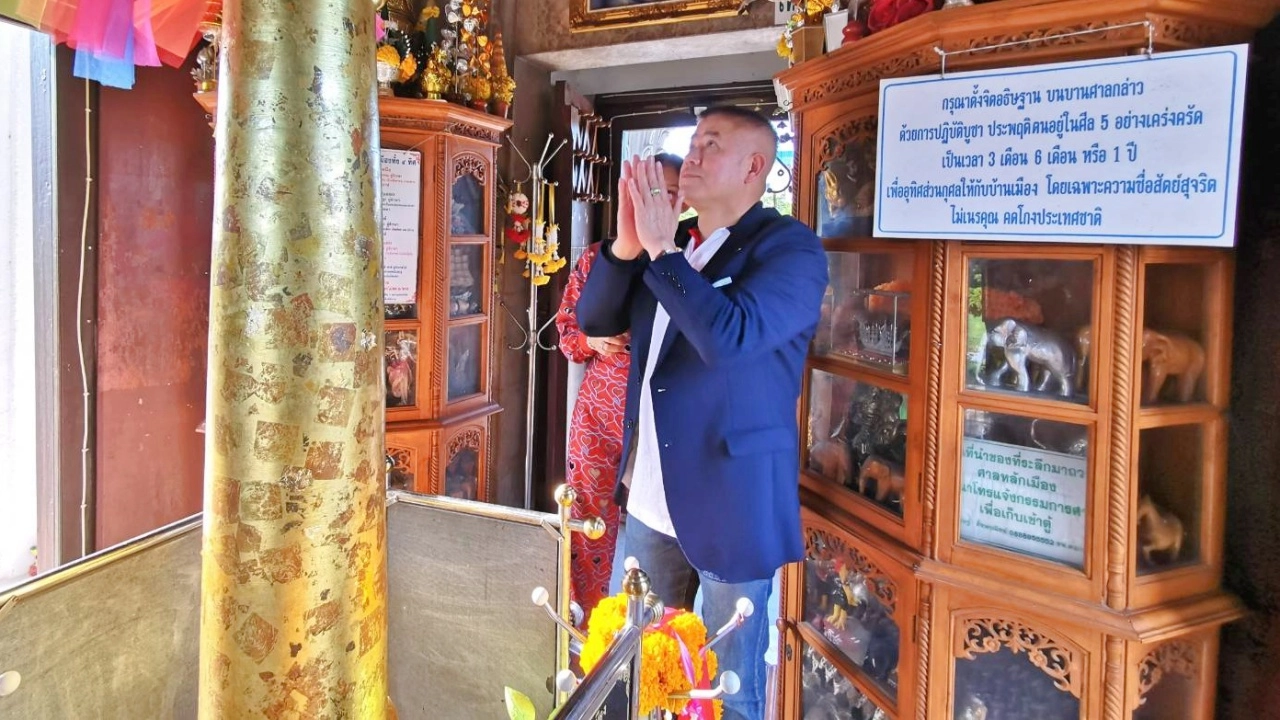 เมื่อวันที่ 14 ก.ย.62 ร.อ.ดร.ธรรมนัส พรหมเผ่า รัฐมนตรีช่วยว่าการกระทรวงเกษตรและสหกรณ์ พร้อมด้วย น.ส.ธนพร ศรีวิราช ภริยา เข้าสักการะศาลหลักเมืองพะเยา ซึ่งเป็นสถานที่ศักดิ์สิทธิ์ อันเป็นที่ตั้งของเสาหลักเมืองพะเยา ตั้งอยู่ริมถนนท่ากว๊าน โดย ร.อ.ดร.ธรรมนัส พร้อมภริยา ได้จุดธูปสักการะขอพรเพื่อความเป็นสิริมงคล ด้วยสีหน้ายิ้มแย้มแจ่มใส กล่าวทักทายคนใกล้ชิดและคณะเจ้าหน้าที่ที่มาคอยต้อนรับอย่างเป็นกันเอง ก่อนเดินทางกลับบ้านพักทันที