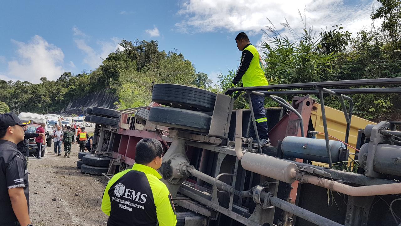 เมื่อเวลา 11.00 น. วันที่ 16 ต.ค.62 ร.ต.อ.สรพันธ์ หงส์เวียงจันทร์ รอง สว.สอบสวน สภ.พะวอ อ.แม่สอด จ.ตาก ได้ไปตรวจสอบเหตุรถพ่วงแหกโค้งพลิกคว่ำ บริเวณถนนสายตาก-แม่สอด กม.52 ต.ด่านแม่ละเม อ.แม่สอด มีคนตายและเจ็บ