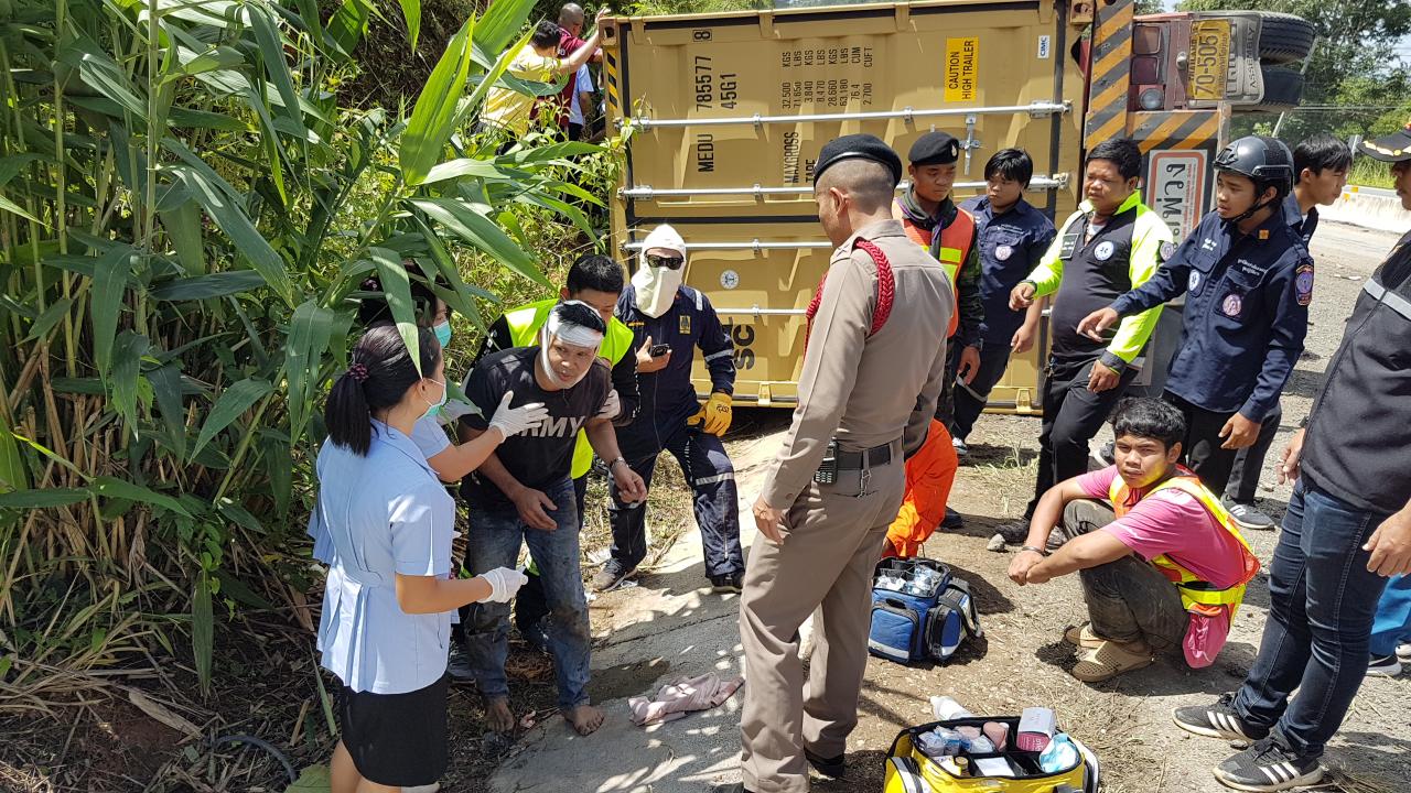 ใจจะขาด! โชเฟอร์พ่วง 18 ล้อ บรรทุกตู้คอนเทนเนอร์ภายในมีรถมือสองจากญี่ปุ่น วิ่งมาจากท่าเรือแหลมฉบัง จะมาส่งที่ท่าเรือชายแดนไทย-เมียนมา อ.แม่สอด เกิดหลุดโค้งช่วงลงเขาชัน บริเวณถนนสายตาก-แม่สอด ชนภูเขา รถพลิกตะแคง ส่วนตู้คอนเทนเนอร์หล่นทับลูกชายวัย 8 ขวบดับสลด ตัวเองและภรรยาสาหัส...