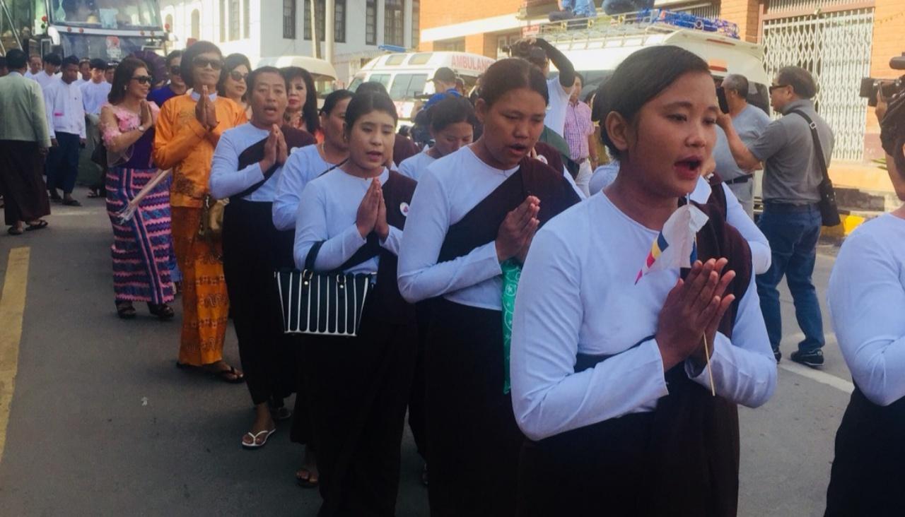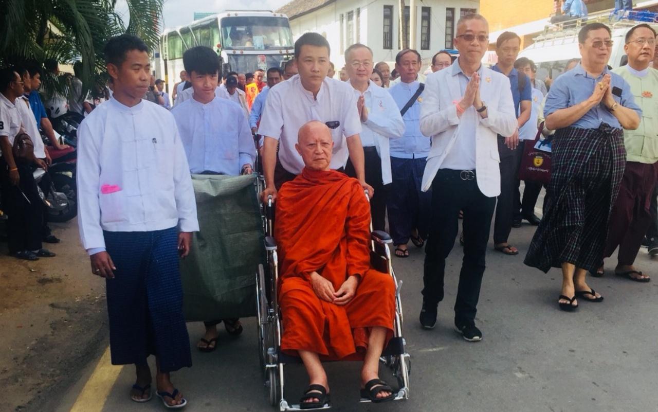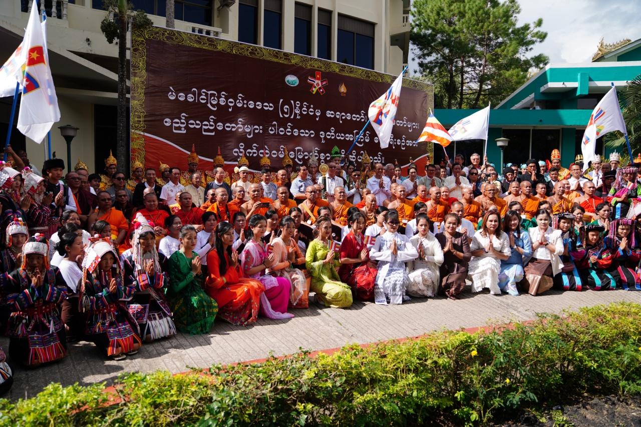 ชาวพุทธของเมืองเชียงตุง รัฐฉาน เมียนมา แห่ร่วมตักบาตรพระสงฆ์จากคณะธรรมยาตรา 5 แผ่นดินลุ่มน้ำโขง ที่บริเวณรอบวัดพระธาตุมหาเมี๊ยะมุนี กันเนืองแน่นหลายพันคน