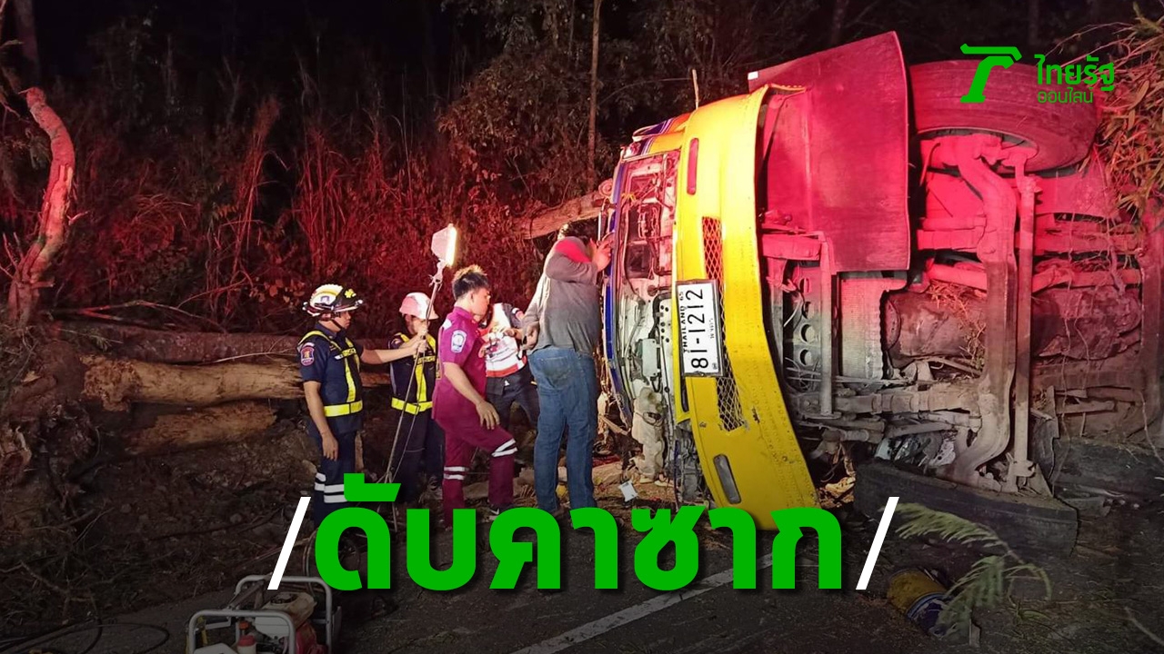 รถบรรทุกเสียหลัก พลิกคว่ำฟาดต้นไม้ข้างทาง บนถนนสายหล่มสัก-ชุมแพ ดับสยองคาซาก 2 ราย คาดทางมืด-ลงเขา จนท.เร่งเคลียร์ก่อนเช้า หวั่นเกิดอุบัติเหตุซ้ำซ้อน