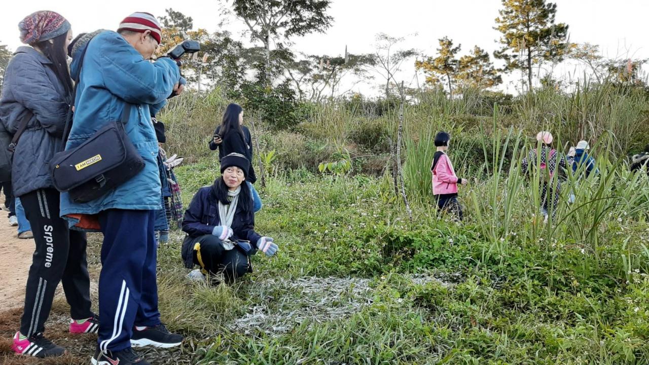 ภูชี้ฟ้า จ.เชียงราย อากาศหนาวมาก วันนี้อุณหภูมิต่ำสุด -1 องศา นักท่องเที่ยวที่ขึ้นมา ต่างแห่ถ่ายรูปน้ำค้างแข็งที่เกิดขึ้นเป็นวันที่ 2 ติดต่อกัน ไม่เคยเกิดน้ำค้างแข็งมานานหลายปีมาแล้ว
