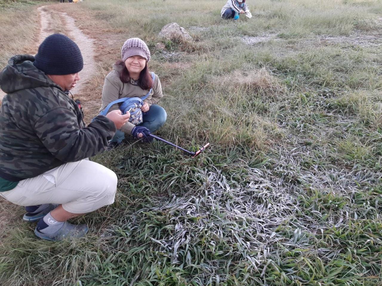 เมื่อวันที่ 10 ธ.ค. 62 ที่อุทยานแห่งชาติภูชี้ฟ้า (เตรียมการ) อ.เทิง จ.เชียงราย อุณหภูมิยังคงลดต่ำอย่างต่อเนื่อง นายสนิท หอมนาน หน.อช.ภูชี้ฟ้า(เตรียมการ) เผยว่า เช้าวันนี้บนยอดภูชี้ฟ้าอุณหภูมิอยู่ที่ -1 องศา เกิดปรากฏการณ์น้ำค้างแข็ง หรือ เหมยขาบ ขึ้นเป็นวันที่ 2 ติดต่อกัน ที่บริเวณข้างทางก่อนขึ้นถึงยอดภูชี้ฟ้า ทำให้นักท่องเที่ยวที่ขึ้นไปชมทะเลหมอกในวันนี้ต่างก็รู้สึกดีใจที่ได้เห็นเหมยขาบ เพราะที่ภูชี้ฟ้าไม่เคยเกิดน้ำค้างแข็งมานานหลายปีแล้ว จึงพากันนำกล้องถ่ายรูปและมือถือมาถ่ายภาพเก็บไว้อย่างคึกคัก ขณะที่ บนยอดภูชี้ฟ้าวันนี้มีนักท่องเที่ยวประมาณ 1,200 คน