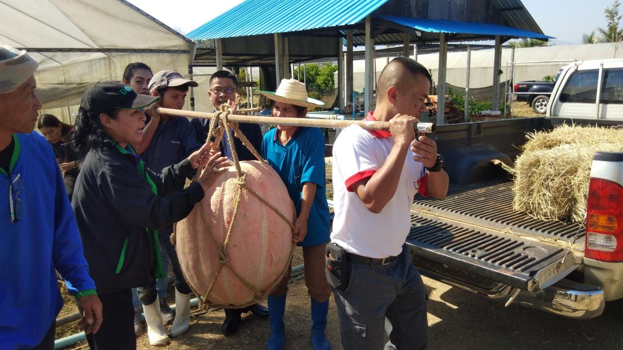 หนักกว่านี้ยังมีไหม ชาวสวนที่ อ.พบพระ พาไปดูฟักทองยักษ์ สุดตะลึงหนักกว่า 70 กก. เตรียมเอาไปโชว์ในงานวันเกษตรและกิ่งกาชาดอำเภอพบพระ เผยลูกใหญ่กว่าปีก่อน