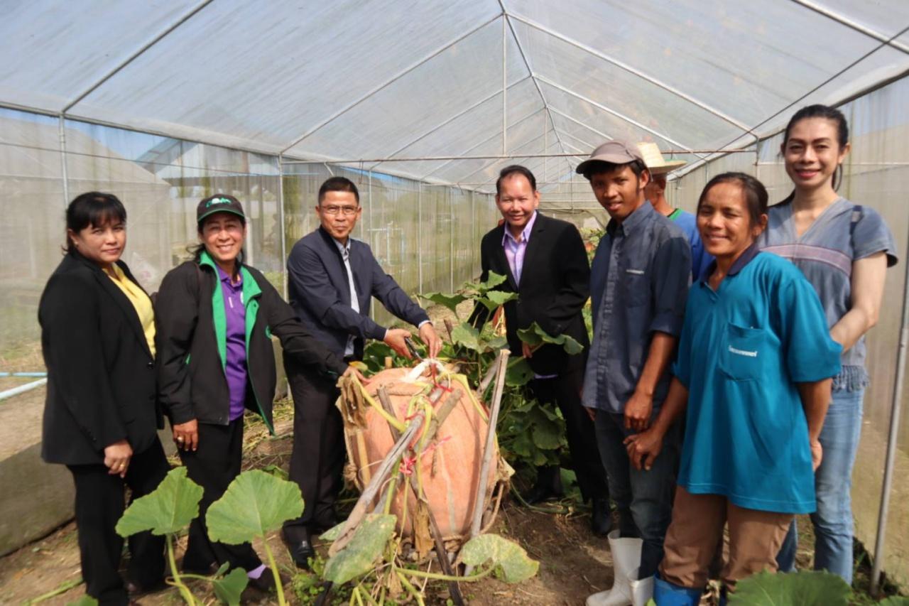 เมื่อวันที่ 18 ธ.ค.62 ผู้สื่อข่าวรายงานว่า ที่สวนนานาพันธุ์ บ้านพบพระทรายงาม ต.พบพระ อ.พบพระ จ.ตาก นายอภิชาติ เหมือนมนัส นายอำเภอพบพระ นางอรพิน แสงมณี เกษตร อ.พบพระ พร้อมด้วยกำนันผู้ใหญ่บ้านเดินทางมาทำพิธีตัด “ฟักทองยักษ์”เป็นฟักทองที่จะเอาไปโชว์ในงานวันเกษตรและกิ่งกาชาดอำเภอพบพระ มีขนาดใหญ่ และน้ำหนักมากกว่าปีที่แล้ว คือ 1 ลูกมีน้ำหนักกว่า 70 กิโลกรัม