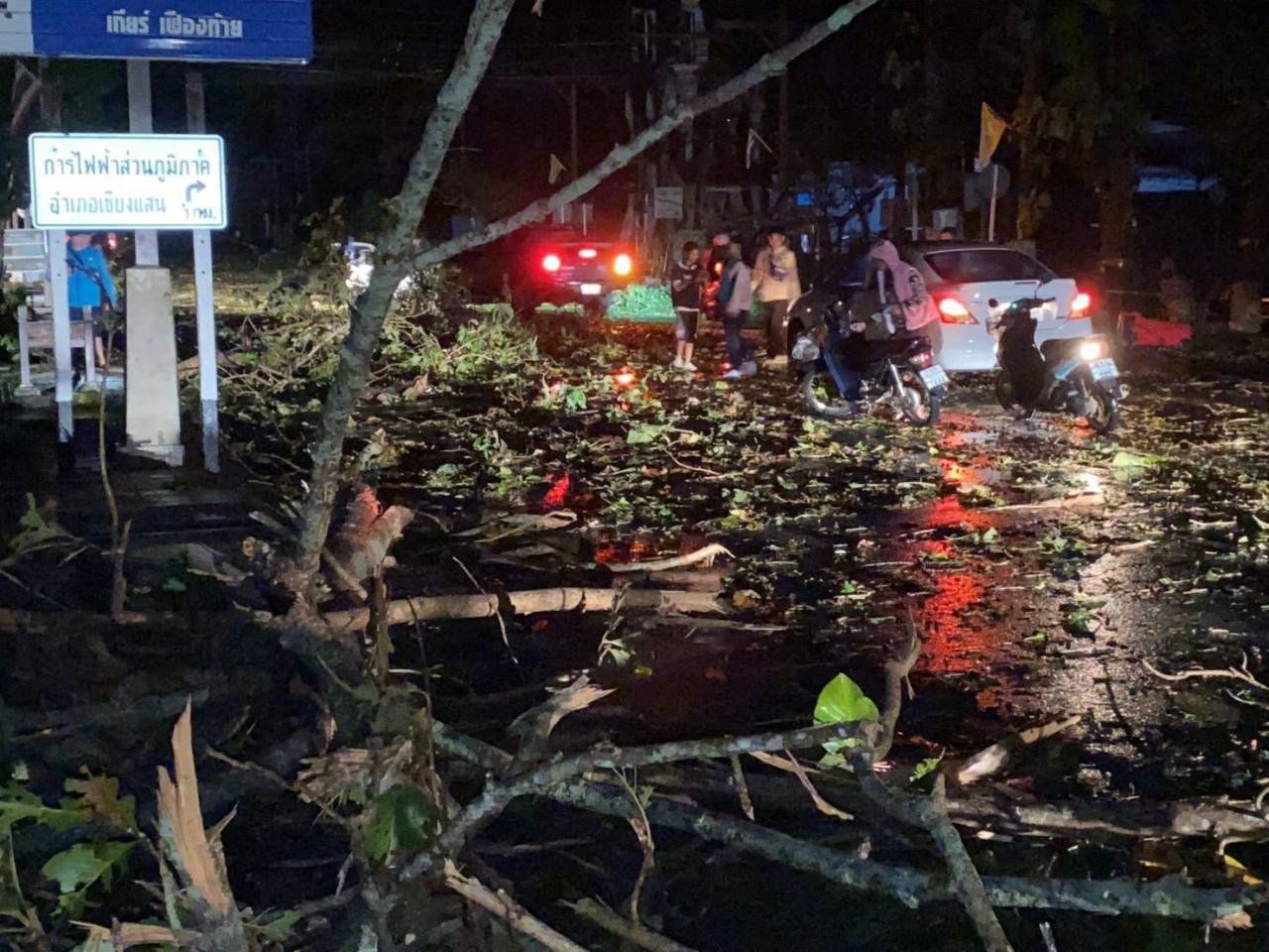 เมื่อเวลา 21.00 น. วันที่ 28 ธ.ค.62 ที่ อ.เชียงแสน จ.เชียงราย ได้เกิดพายุลูกเห็บขนาดเท่าลูกลำไยและฝนตกอย่างรุนแรง ร่วม 30 นาที ลมพายุแรงทำให้เสาไฟฟ้าล้มระเนระนาดกว่า 10 ต้นบนถนนสายเชียงแสน-แม่จัน เขตบ้านกู่เต้า ต.โยนก ไฟฟ้าดับทั้งเมือง ต้นไม้ข้างทางหักโค่นในเขตเทศบาล จนทำให้การจราจรติดขัด และที่บ้านป่าสักหางเวียง ม.9 ต.เวียง หลังคาบ้านปลิวพาดสายไฟฟ้าแรงสูง