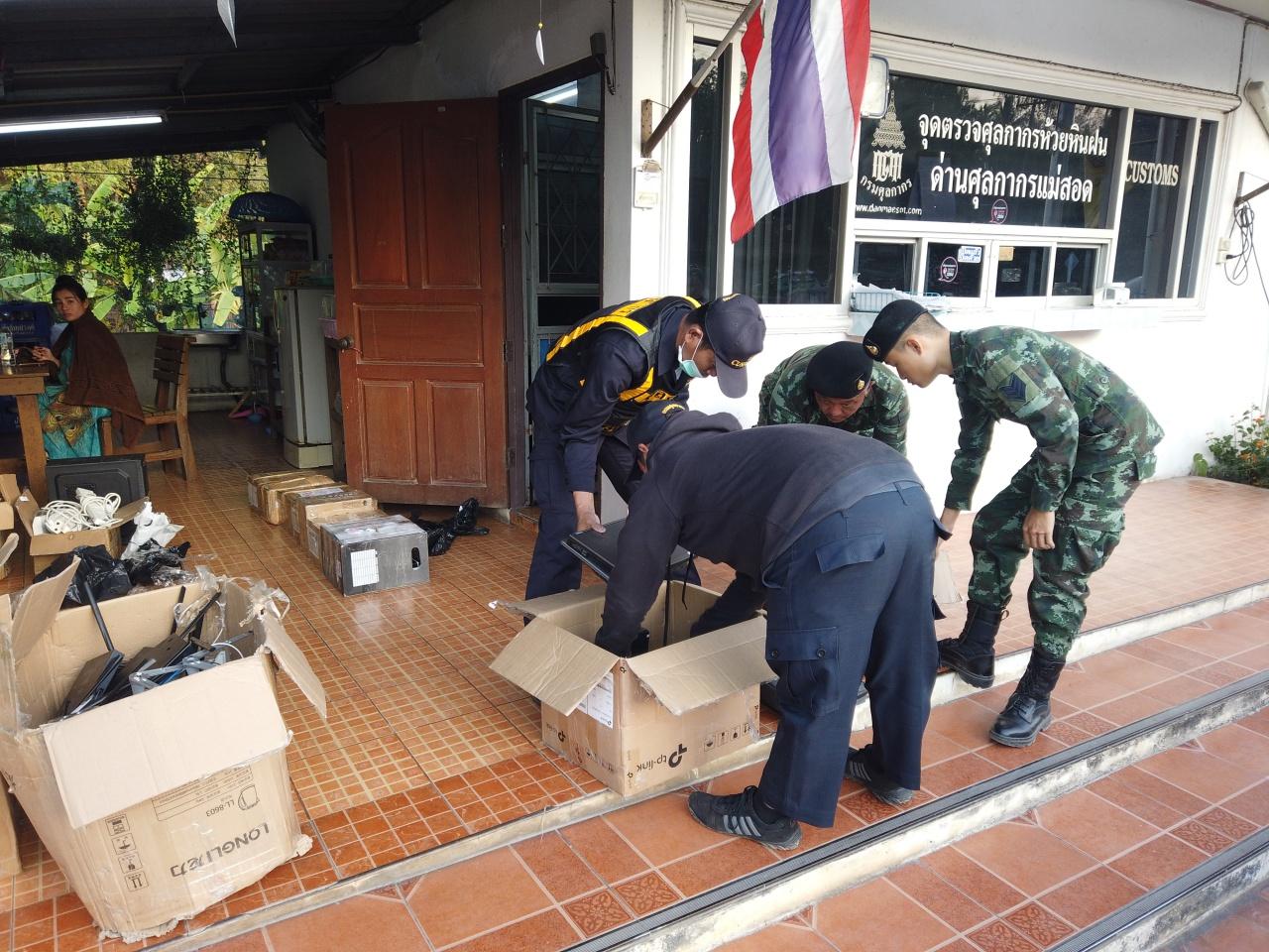 เมื่อเจ้าหน้าที่ตรวจที่กระโปรงหลังรถ เมื่อเปิดออกพบกล่องกระดาษหลายใบบรรจุสิ่งของจนเต็ม เมื่อเจ้าหน้าที่เปิดกล่องพบว่าเป็นคอมพิวเตอร์ตั้งโต๊ะ จอมอนิเตอร์มือสอง และโน้ตบุ๊ก เกือบ 100 ชุด อัดแน่นกล่อง จากการสอบถามทั้งสองไม่สามารถพูดภาษาไทยได้ ส่วนนายทิว คนขับบอกว่า ไปรับบุคคลทั้งสองและสัมภาระ จากหน้าตลาดโรงเกลือ อ.อรัญประเทศ จ.สระแก้ว จุดหมายปลายทางที่ชายแดน อ.แม่สอด เจ้าหน้าที่จึงยึดอุปกรณ์ทั้งหมดไว้ตรวจสอบ ส่วนชาวกัมพูชามีพาสปอร์ตเข้าเมืองอย่างถูกต้อง