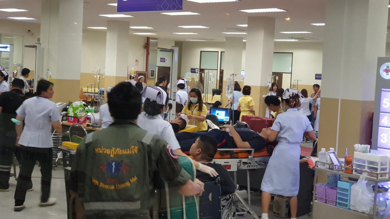 ขณะที่ โรงพยาบาลสันทราย อำเภอสันทราย เกิดโกลาหลเนื่องจากเตียงคนไข้ไม่พอต้องให้เด็กนอนกับเสื่อที่ปูกับพื้น เพื่อให้แพทย์และพยาบาลประเมินอาการคนป่วย