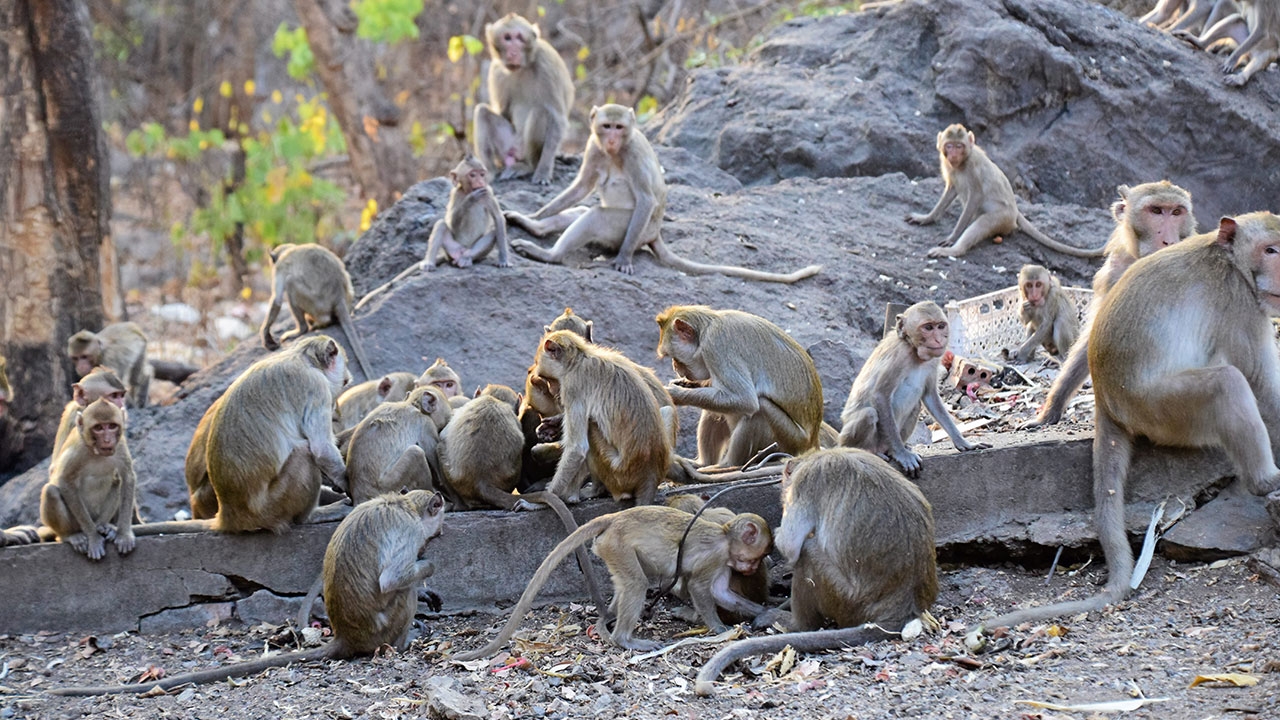 ภัยแล้งลามไปถึงลิงต้องหนีออกจากป่าเขาลงมานั่งรออาหารกันข้างถนน โดยเมื่อวันที่ 8 ก.พ. ที่วัดถ้ำเทพบันดาลหรือถ้ำลิง บ้านลำจังหัน หมู่ 1 ต.สามแยก อ.วิเชียรบุรี จ.เพชรบูรณ์ เกิดปัญหาขาดแคลนน้ำอย่างหนัก เนื่องจากแหล่งน้ำที่มีอยู่ตามธรรมชาติแห้งขอดอย่างรวดเร็ว ส่งผลให้ลิงแสมและลิงวอกที่อาศัยอยู่บนเขาเป็นจำนวนมากไม่มีอาหาร บางตัวผอมโซ ทำให้ลิงลงมาหากินด้านล่างนั่งอยู่ริมทางหลวง 2051 เส้นทางบึงสามพัน-วิเชียรบุรี (สายเก่า) เพื่อขอเศษอาหารจากชาวบ้านและนักท่องเที่ยวที่ขับรถผ่านไปมา สร้างความเดือดร้อนให้ผู้ใช้รถใช้ถนน เนื่องจากฝูงลิงวิ่งตัดไปมา บางครั้งหลบรถไม่ทันถูกชนตาย