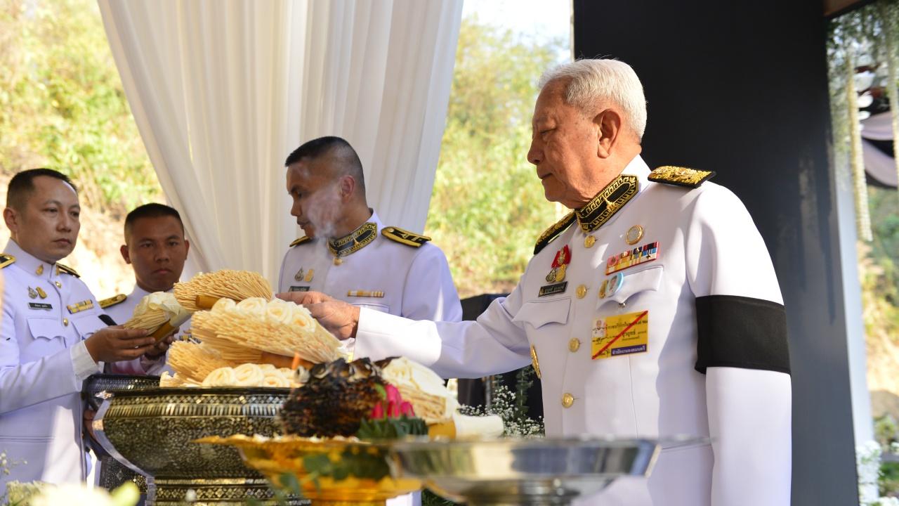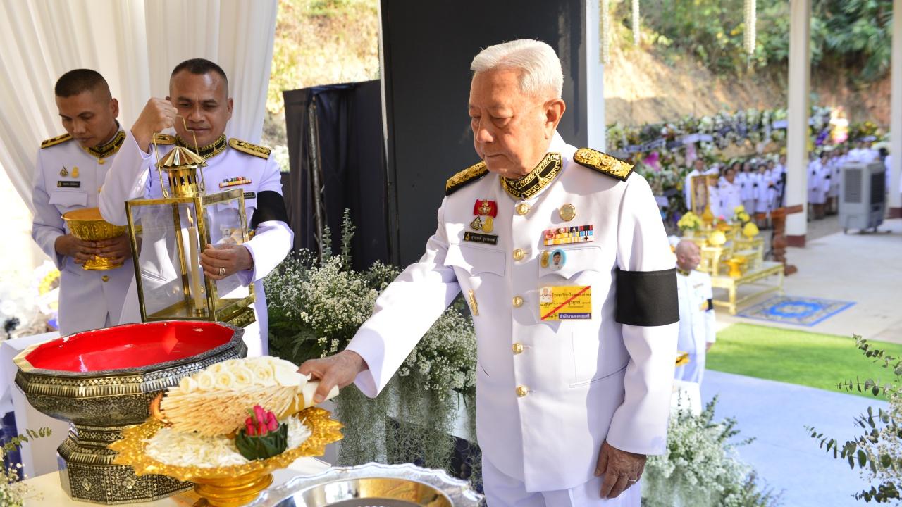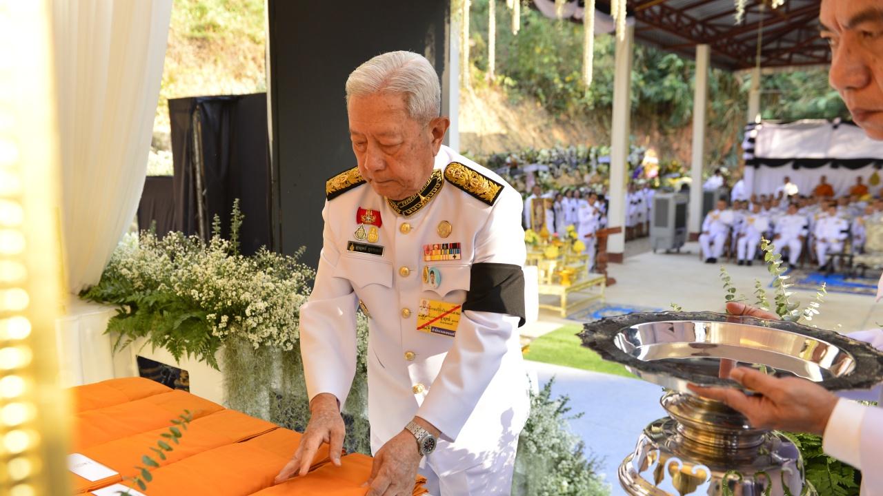 ต่อจากนั้น พล.อ.สุรยุทธ์ จุลานนท์ วางผ้าไตรพระราชทาน จำนวน 5 ไตร พระสงฆ์ทรงสมณศักดิ์พิจารณาผ้าไตร จากนั้นประธานองคมนตรีวางดอกไม้จันทน์ จุดไฟพระราชทานเพลิงศพ และบรรดาข้าราชการ ประชาชน ร่วมวางดอกไม้จันทน์เพื่อแสดงความอาลัยต่อผู้วายชนม์ เป็นอันเสร็จพิธี