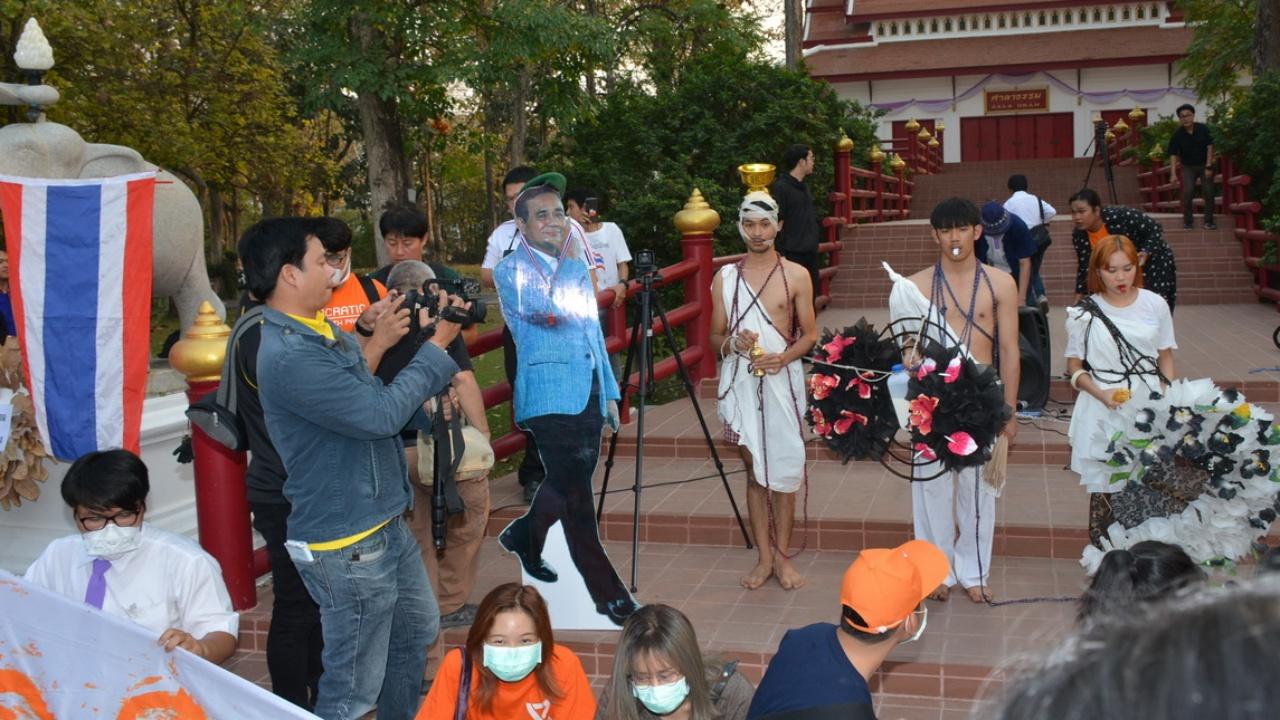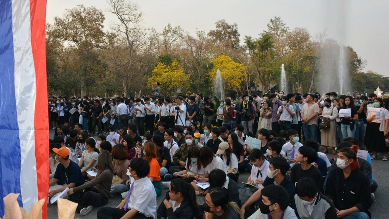ยืนหยัดเพื่อประชาธิปไตย นักศึกษามหาวิทยาลัยเชียงใหม่ กว่า 1 พันคน ร่วมกิจกรรม “#ช้างเผือกจะไม่ทน” ถือป้ายแสดงออกเชิงสัญลักษณ์หน้าสแตนดี้นายกฯ