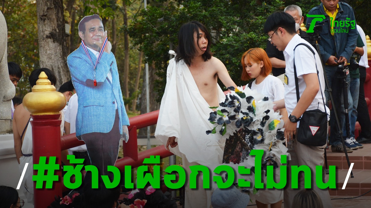 เมื่อเวลา 17.00 น. วันที่ 25 ก.พ.63 ที่หน้าศาลาธรรม ลานนำพุ มหาวิทยาลัยเชียงใหม่ ผู้สื่อข่าวรายงานว่า ได้มีกลุ่มนักศึกษามหาวิทยาลัยเชียงใหม่ กว่า 1,000 คน มาร่วมกิจกรรม “#ช้างเผือกจะไม่ทน” โดยมีการนำสแตนดี้รูปภาพของ พล.อ.ประยุทธ์ จันทร์โอชา นายกรัฐมนตรีและรัฐมนตรีว่าการกระทรวงกลาโหม (กห.) มาตั้งไว้ในบริเวณที่จัดกิจกรรม ภายหลังศาลรัฐธรรมนูญวินิจฉัยยุบพรรคอนาคตใหม่