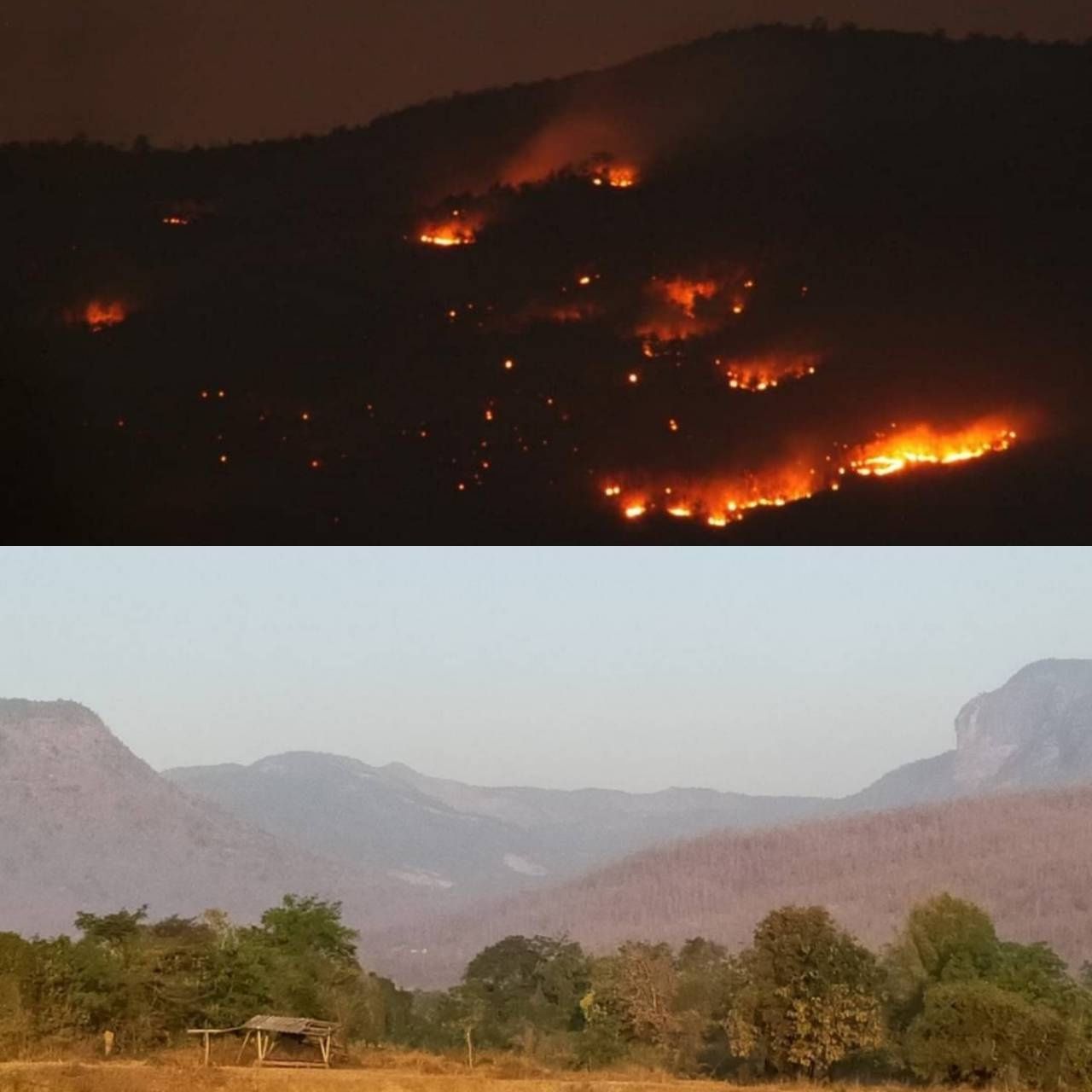 สำหรับความคืบหน้ากรณีที่เป็นข่าวว่าเกิดไฟป่าลุกไหม้บริเวณเทือกเขาในพื้นที่อุทยานแห่งชาติอินทนนท์ รอยต่อใกล้ยอดดอยหัวเสือ ในช่วงค่ำวานนี้ (5 มี.ค.63) ศูนย์ฯ อำเภอจอมทอง ได้เข้าตรวจสอบพบว่าไม่ใช่บริเวณดอยหัวเสือ แต่เป็นพื้นที่ดอยห้างผี ซึ่งห่างจากดอยหัวเสือหลายกิโลเมตร เป็นพื้นที่ที่เคยมีการบริหารจัดการเชื้อเพลิง เกิดการเผาไหม้ไปแล้วครั้งหนึ่ง เชื้อเพลิงจึงมีปริมาณน้อย ทำให้ไฟครั้งนี้ไม่รุนแรงอย่างที่เห็นในภาพ และไฟเกิดเป็นหย่อมๆ ไม่ลุกลามต่อเนื่อง ซึ่งเจ้าหน้าที่ได้เฝ้าระวังไฟในพื้นที่อย่างใกล้ชิดตลอดทั้งคืน จนดับไฟได้สำเร็จ