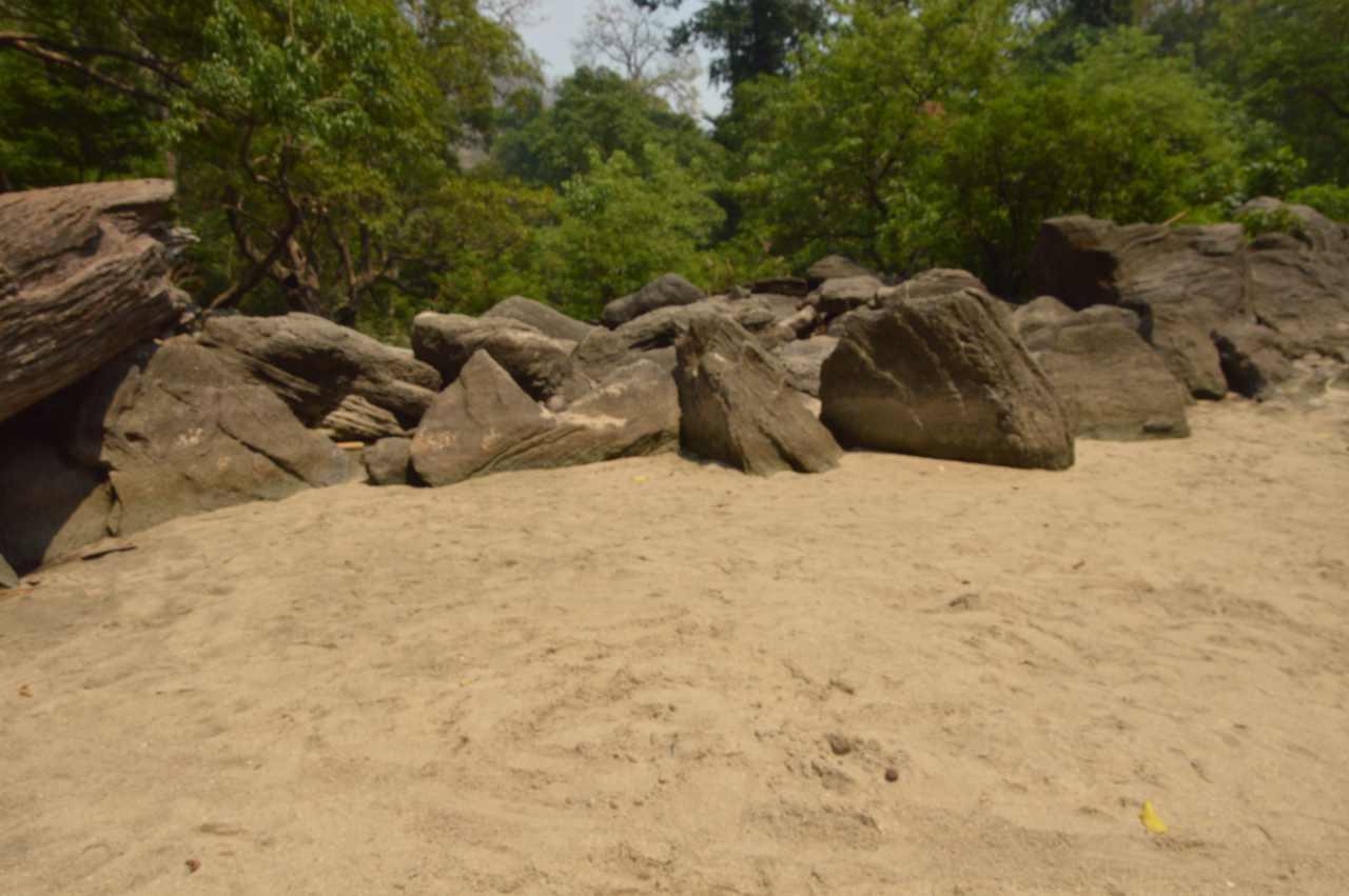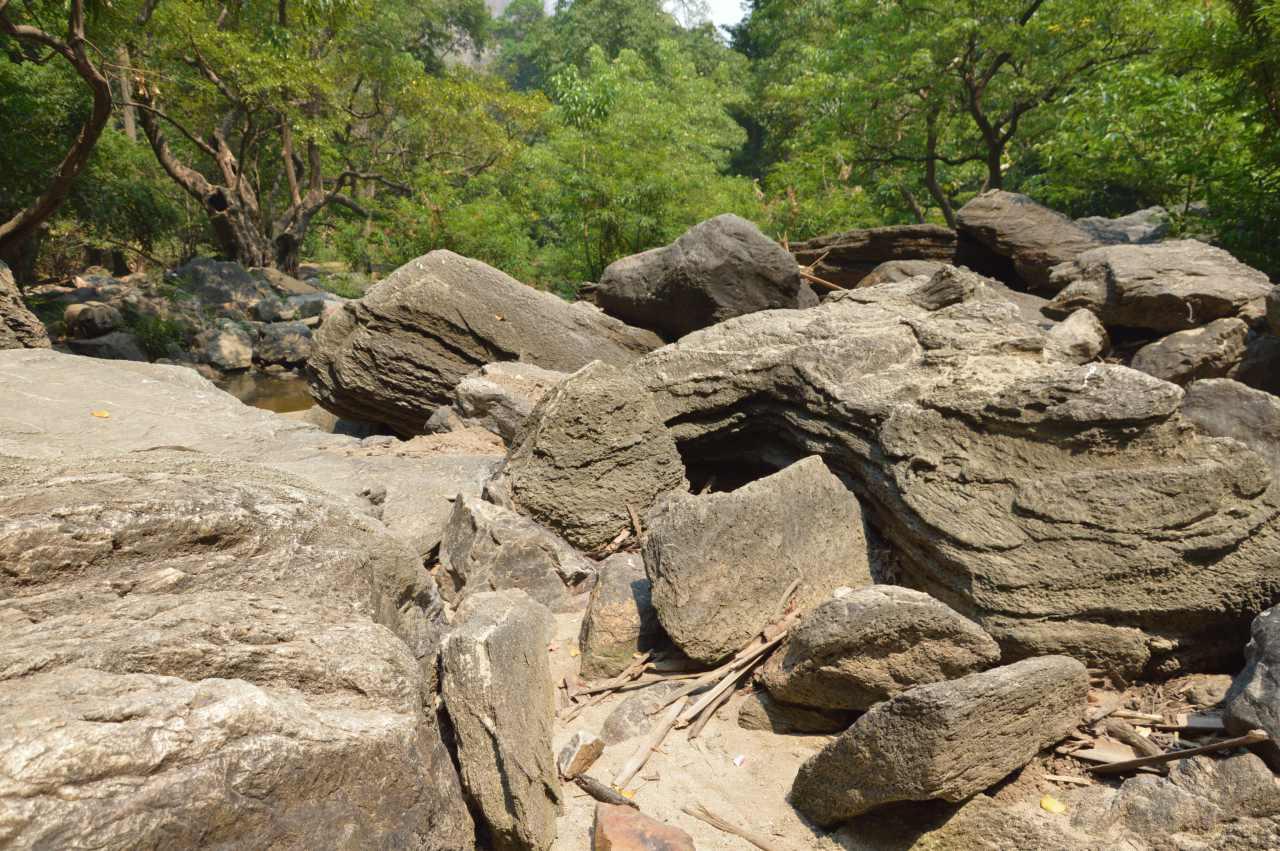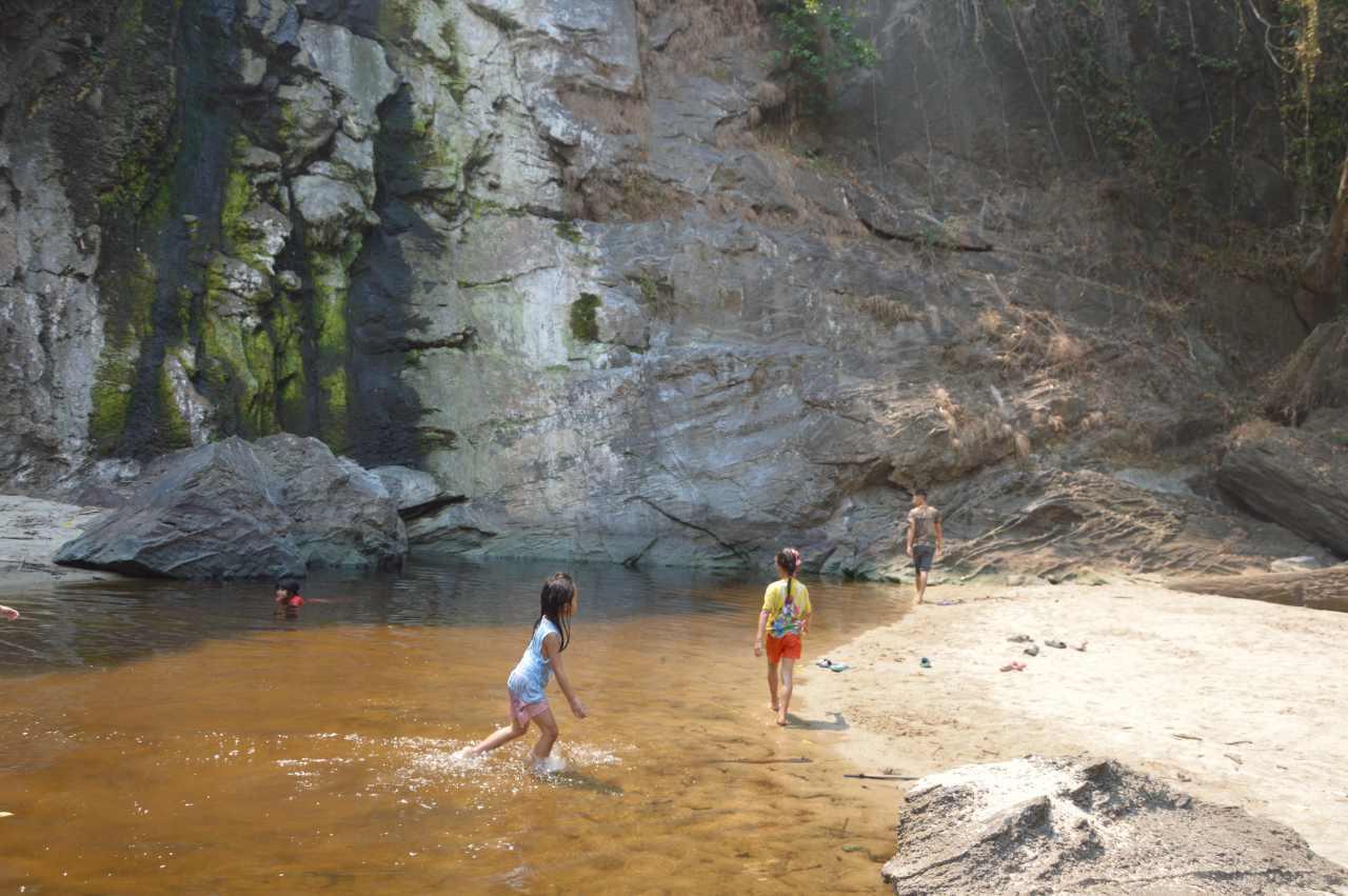ขณะที่แอ่งน้ำด้านล่างน้ำตก แทบไม่มีน้ำ รวมถึงตามลำธาร แต่สภาพดังกล่าวได้สร้างความประทับใจอีกมุมหนึ่ง ทำให้ยังพอมีนักท่องเที่ยวพาครอบครัวมาพักผ่อนคลายร้อนบ้าง