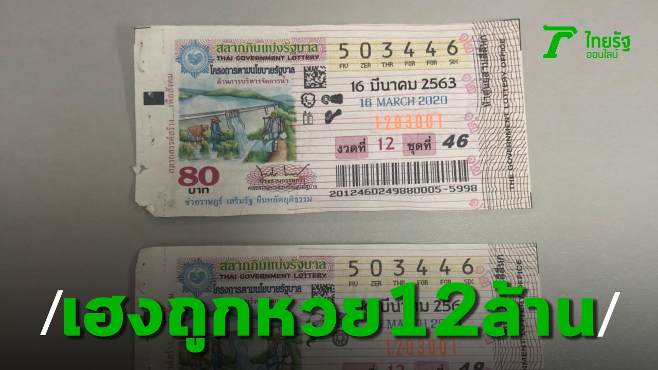 ผู้สื่อข่าวรายงานว่า เมื่อเวลา 16.31 น.วันที่ 16 มี.ค. 63 พ.ต.ท.สมชัย นาคปลา รอง ผกก. (สอบสวน) สภ.นิคมอุตสาหกรรมลำพูน ได้รับแจ้งและลงบันทึกประจำวัน กรณี นายเจเจ (นามสมมติ) อายุ 41 ปี ชาวบ้าน เขตคลองสามวา กรุงเทพมหานคร เดินทางเข้าแจ้งความพร้อมกับสลากกินแบ่งรัฐบาล 2 ใบ หมายเลข 503446 งวดวันที่ 12 ประจำวันที่ 16 มี.ค.63 ถูกสลากรางวัลที่ 1 จำนวน 12 ล้านบาท