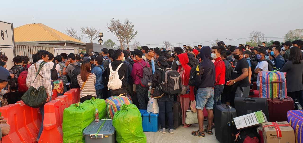 แรงงานพม่านับหมื่นทะลักรอข้ามแดนที่แม่สอดในวันสุดท้าย ก่อนปิดตายทุกด่านห้ามคนเข้า-ออกสกัดโควิด-19 ยกเว้นรถส่งสินค้าที่มีคนขับกับลูกน้อง รวมคันละไม่เกิน 2 คนเท่านั้น