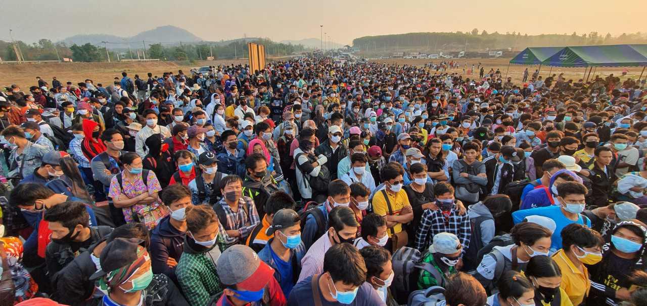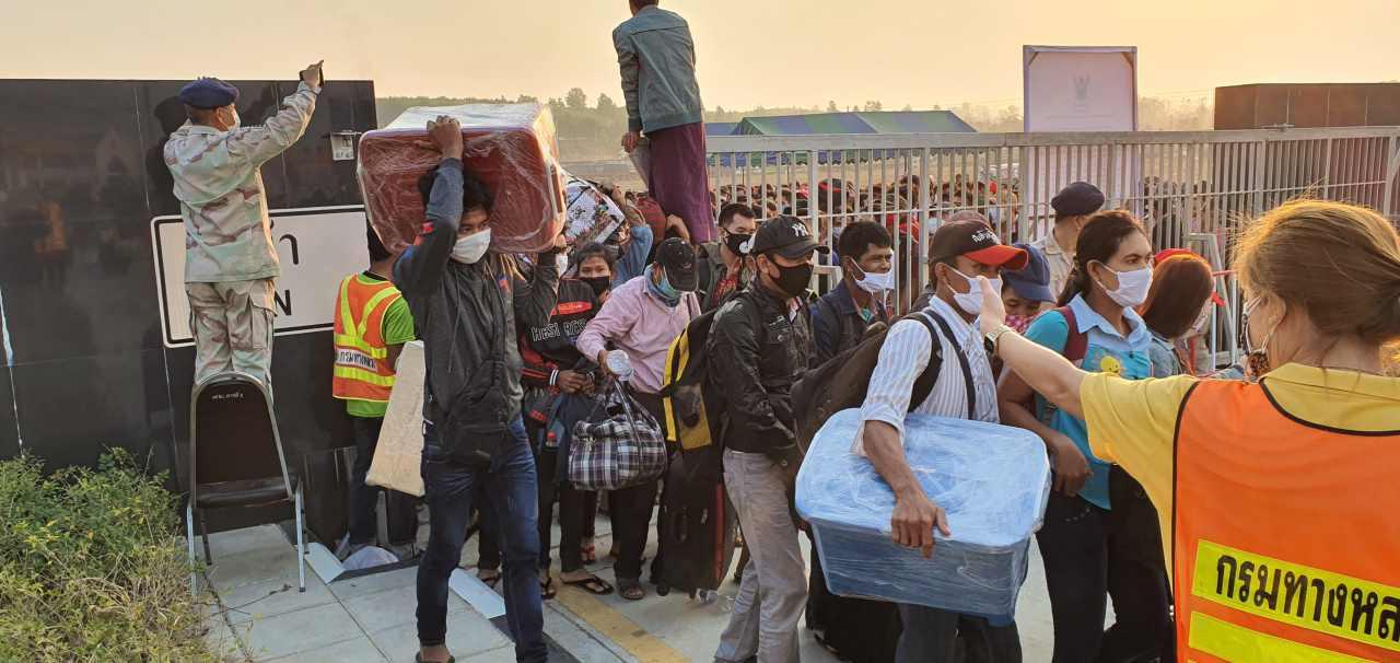 วันที่ 24 มี.ค. ผู้สื่อข่าวรายงานจาก ด่านพรมแดนสะพานมิตรภาพไทย-เมียนมา แห่งที่ 2 ซึ่งเป็นด่านเดียว ที่สามารถข้ามไปยังประเทศเมียนมาได้ ตั้งแต่เช้ามีแรงงานชาวเมียนมาเดินทางมาปักหลักหน้าบริเวณนอกประตูทางเข้าไปยังที่ทำการด่านตรวจคนเข้าเมืองตาก จำนวนกว่า 1,000 คน ซึ่งปกติแล้ว ด่านฯ จะปิดตามประกาศผวจ.ตาก ตั้งแต่วันที่ 23 มี.ค.