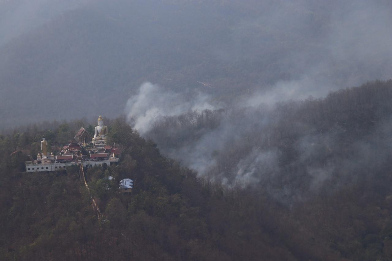 จนท.อุทยานฯ ทหาร และชาวบ้าน เข้าดับไฟป่าดอยสุเทพ ท่ีปะทุ 3 จุดลุกไหม้หลังวัดพระธาตุดอยคำ พร้อมทั้งได้เฮลิคอปเตอร์ช่วยทิ้งน้ำดับไฟบนดอยปุย และข้างหอดูดาว รองผู้ว่าฯ เชียงใหม่ชี้ฝีมือคนแน่นอน