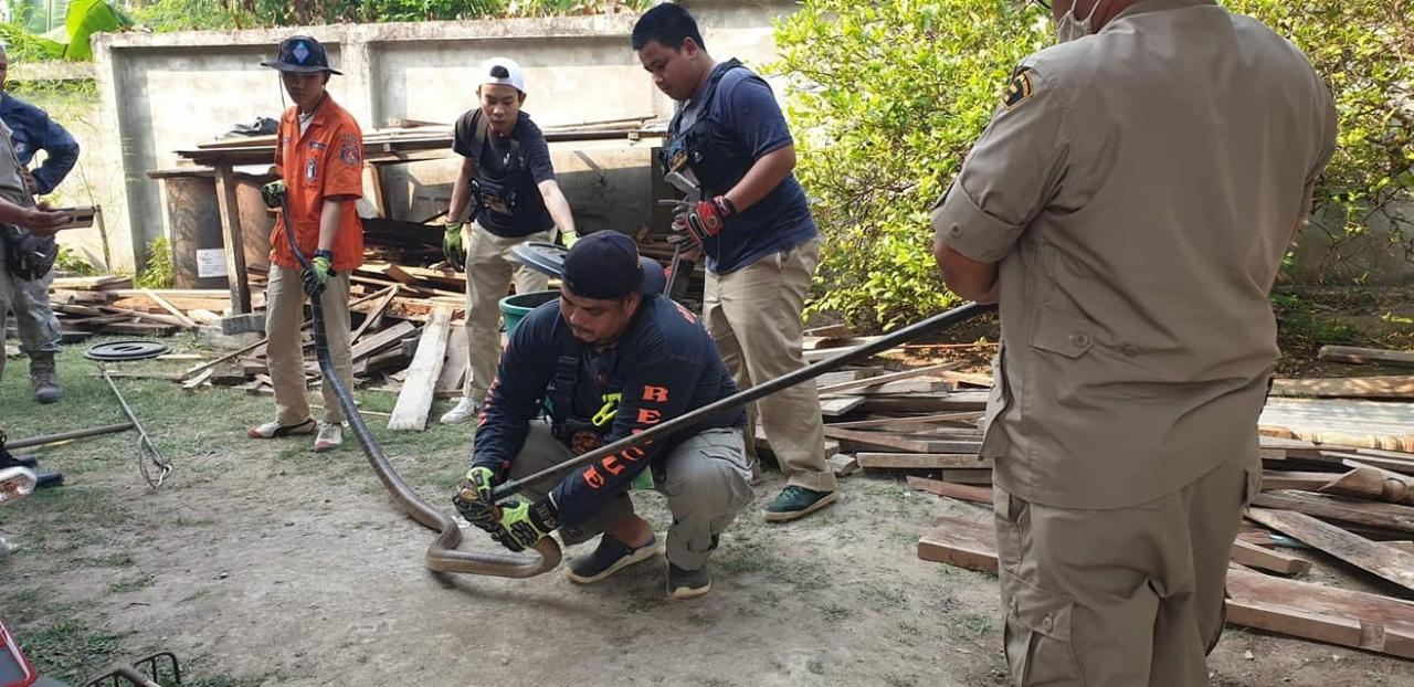 เมื่อวันที่ 8 เม.ย.63 นายอำนาจ ใจแสน หัวหน้ากู้ชีพกู้ภัยพายัพพบพระ อ.พบพระ จ.ตาก ได้รับการประสานขอความช่วยเหลือมีสัตว์เลื้อยคลานเข้าไปในบ้านเรือนราษฎร ที่บ้านหมู่ 1 ต.พบพระ อ.พบพระ จึงเดินทางไปให้ความช่วยพร้อมกับกู้ชีพกู้ภัยทิวสน และกู้ชีพกู้ภัยร่มโพธิ์ โดยจุดที่งูเข้าไปซ่อนตัวอยู่ใต้กองเศษไม้ข้างบ้าน กู้ภัยต้องใช้ความระมัดระวังอย่างที่สุด เพราะเป็นงูจงอางตัวเมียที่ดุร้าย ต้องช่วยกันจับอย่างยากลำบากจนกระทั่งสามารถดึงตัวออกจากกองไม้ได้ วัดขนาดแล้วมีความยาวร่วม 5 เมตร สีดำเมี่ยม จากนั้นจึงได้นำลงถังพลาสติกขนาดใหญ่ นำไปปล่อยสู่ธรรมชาติทางใครทางมัน