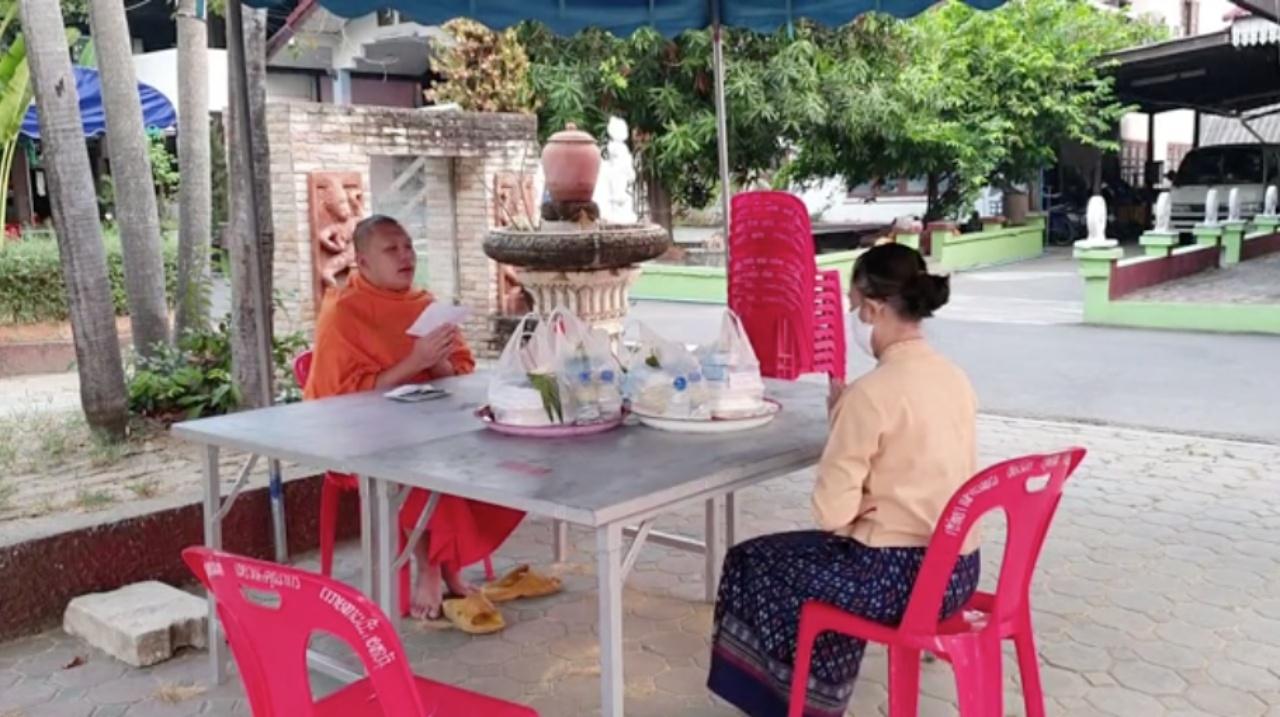 แต่ก็ไม่ได้ห้ามหรือให้งดการไปทำบุญตามประเพณี เช้าวันนี้ ซึ่งเป็นวันมหาสงกรานต์ ที่ วัดตำหนัก ตำบลแม่เหียะ อ.เมือง จ.เชียงใหม่ ได้มีประชาชนพากันไปทำบุญตานขันข้าว ให้กับญาติผู้ล่วงลับตามประเพณีปี๋ใหม่เมือง และปักตุงเจดีย์ทราย และนำมาตรการ Social Distancing หรือ การเว้นระยะห่างให้ปลอดโรค ในระหว่างมาทำบุญอีกด้วย.
