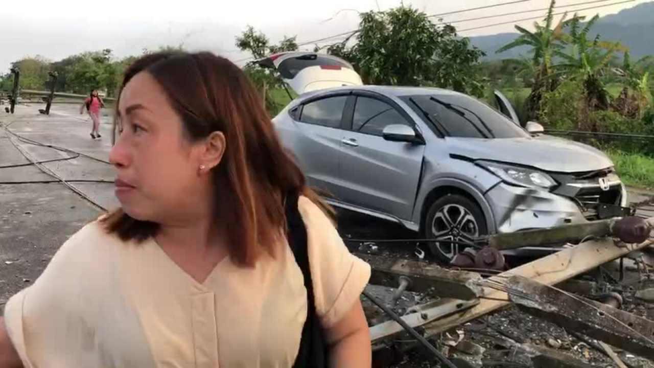 ขณะเดียวกับที่ น.ส.จันทร์ฟอง ใหม่เม้า อายุ 44 ปี ขับรถเก๋งฮอนด้า HRV สีเทา ทะเบียน กล 3107 เชียงราย มาถึงที่เกิดเหตุเสาไฟฟ้าขนาดใหญ่ได้ล้มลงขวางหน้ารถหวุดหวิดจะทับใส่รถ ทำให้ น.ส.จันทร์ฟอง เบรกรถไม่ทัน หน้ารถไปชนเสาไฟฟ้าที่ขวางอยู่กลางถนนได้รับความเสียหาย