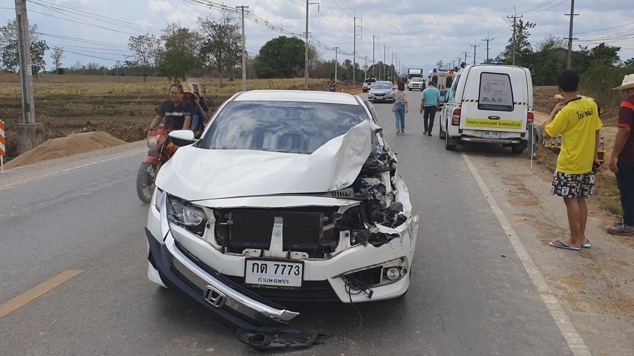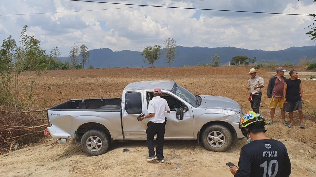 ส่วนรถคู่กรณีเป็นกระบะอีซูซุ สีบรอนซ์ ทะเบียน บฉ 1759 ตาก พลิกคว่ำหลายตลบ แล้วจอดข้างทางในสภาพบุบบู้บี้ทั้งคัน มีนายสุทิตย์ กาญจนวงษ์ อายุ 79 ปี อดีต ผอ.โรงเรียนแม่จะเรา ชาวบ้าน หมู่ 2 ต.แม่จะเรา อ.แม่ระมาด จ.ตาก เป็นคนขับ ได้รับบาดเจ็บที่มือ