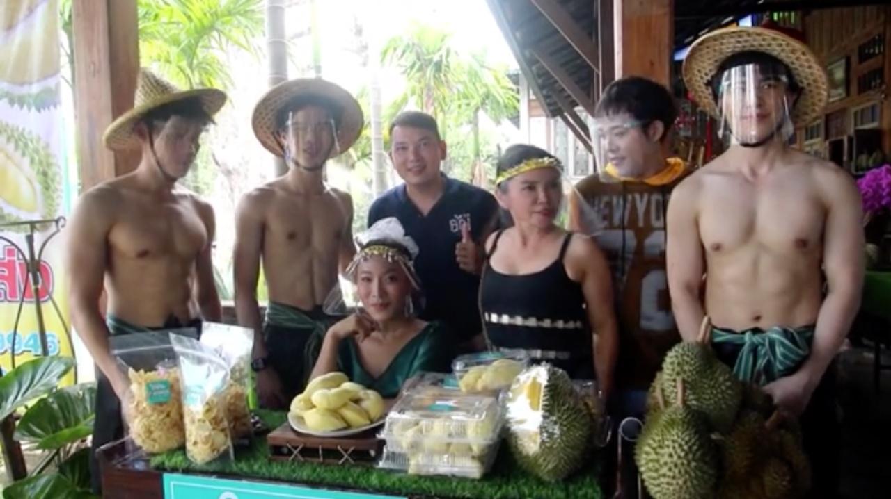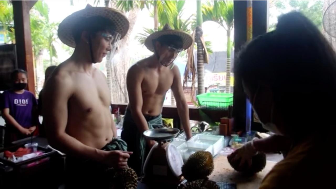 กระแสทุเรียนมาแรง ร้านที่เชียงใหม่ จัดพนักงานขายหนุ่มหล่อกล้ามโต บึกบึน บริการพร้อมไลฟ์สด พร้อมโปรฯ ลดแลกแจกแถมเล่นเกม ทำให้ลูกค้ามีความสุข ซื้อไปกินที่บ้าน จนทุเรียนหมดเกลี้ยงเกือบทุกวัน