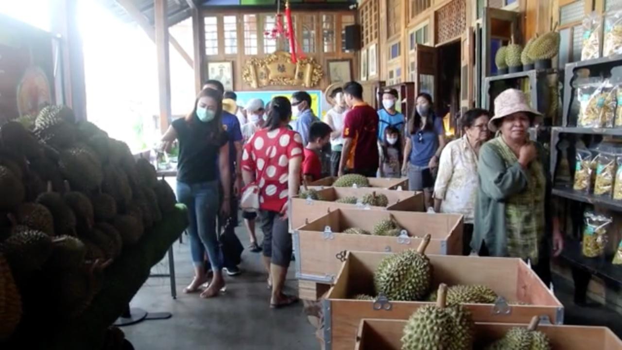 เมื่อวันที่ 20 พ.ค.63 ผู้สื่อข่าวรายงานว่า กระแสผลไม้ไทยอย่างทุเรียนปีนี้ฟีเวอร์จัด มาแรงแซงทุกโค้งไม่เว้นแม้แต่ร้านใต้ต้น ต.บวกค้าง อ.สันกำแพง จ.เชียงใหม่ ริมถนนสายเชียงใหม่ – แม่ออน ซึ่งเป็นร้านอาหาร เครื่องดื่มบริการต่างๆ แต่ตอนนี้นำทุเรียนมาลงขาย ทำให้มีประชาชนมาซื้อทุเรียนกันจำนวนมาก โดยที่ร้านมีทุเรียนจำนวน 5 สายพันธุ์คัดเกรดจากจันทบุรีให้ได้เลือกซื้อกัน