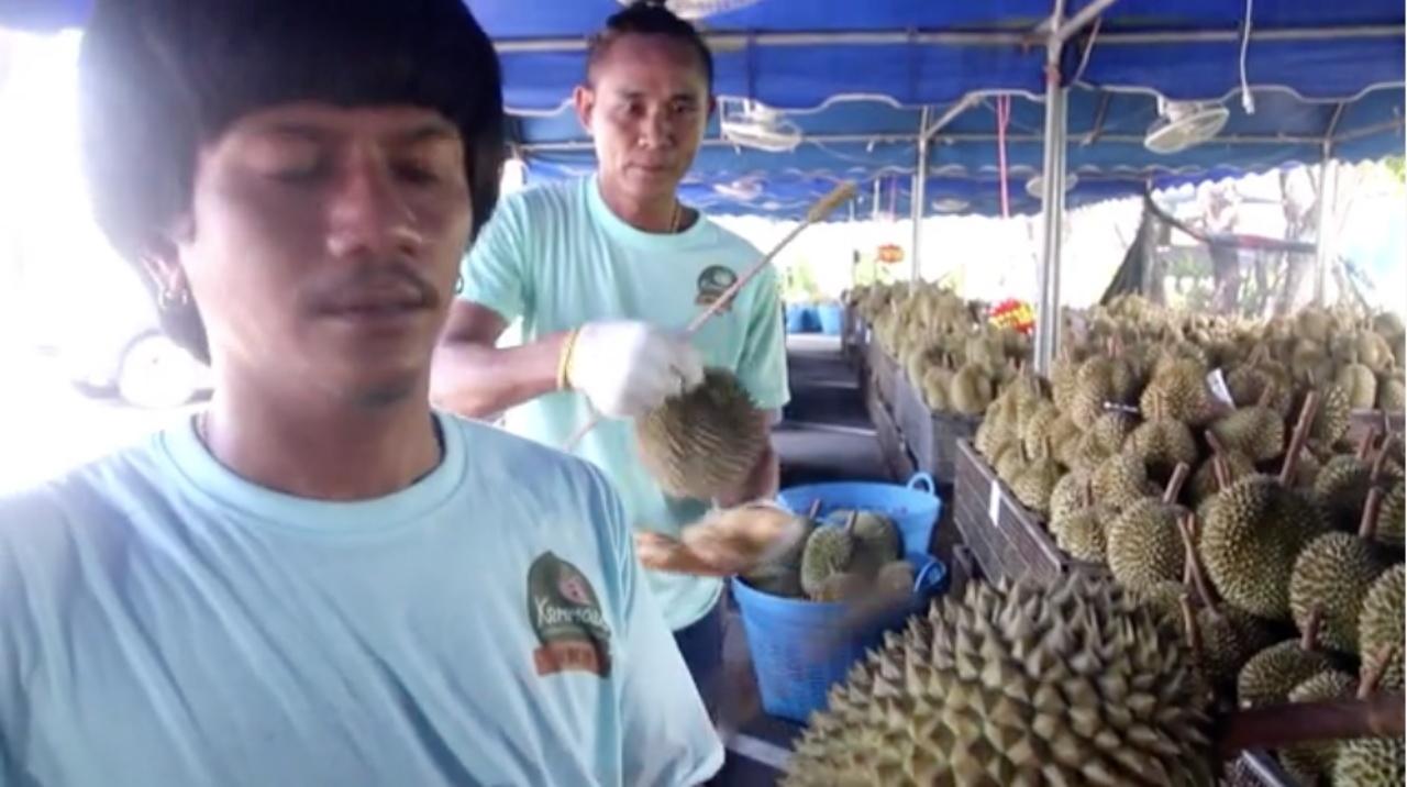 นอกจากทุเรียนดีแล้ว พนักงานขายที่มาบริการก็คัดมาอย่างดี เป็นหนุ่มหล่อกล้ามโต บึกบึน ตีเนื้อเสียงดังตุ๊บๆ แถมยังอัธยาศัยดียิ้มเก่ง จำนวนหลายคนมาช่วยบริการสร้างสีสัน และมีการไลฟ์สด เล่นเกม พร้อมโปรโมชั่นลดแลกแจกแถม นาทีทอง จนชาวบ้านมาซื้อกันจำนวนมาก บางรายก็ขอถ่ายรูปหนุ่มหล่อเป็นที่ระลึกด้วย