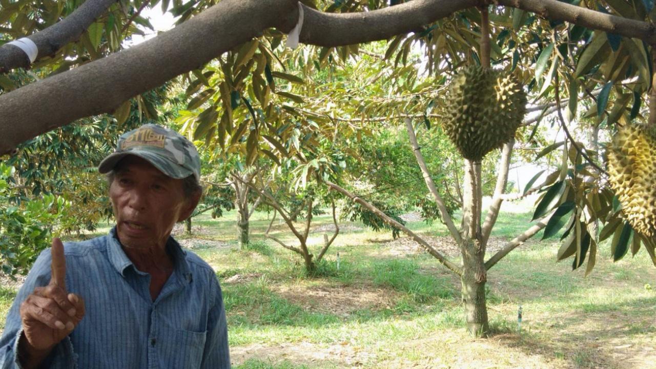 "ปรับพื้นที่บริเวณข้างบ้าน จำนวน 10 ไร่ ปลูกทุเรียนหมอนทอง ปรากฏ ว่าประสบความสำเร็จ เนื่องจากทางสวนมีการให้สารอาหารครบถ้วน พออากาศหนาวเริ่มมาก็กระตุ้นให้ดอกออก ตามธรรมชาติทุเรียนจะสร้างเนื้อช่วงเดือนมีนาคมถึงเมษายน แต่ก็มีอุปสรรคคือบางพื้นที่มีน้ำไม่เพียงพอ ทุเรียนที่สวนจะเร่งผลผลิตให้ออกก่อนฤดู ทำให้ขายได้ราคาดี โดยทุเรียนหมอนทองสามารถเก็บเกี่ยวผลผลิตได้ในช่วงเดือนเมษายนจนถึงเดือนพฤษภาคม"