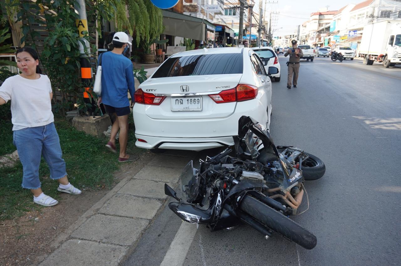 ส่วนผู้บาดเจ็บอีกราย เป็นคู่กรณีขี่รถบิ๊กไบค์ ยี่ห้อคาวาซากิ สีดำ ทะเบียน 1 กฉ 4843 แพร่ เป็นชายอายุประมาณ 40-50 ปี สวมเสื้อแขนยาว กางเกงยีนส์ สภาพได้รับบาดเจ็บตามร่างกาย ส่วนรถที่ขี่ได้ไถลไปไกลกว่า 30 เมตร ไปชนรถเก๋งยี่ห้อฮอนด้า ซิตี้ สีขาว ทะเบียน กฉ 1869 แพร่ ของ น.ส.สุวิทมล ทาร์ราม อายุ 34 ปี ชาวบ้าน ม.12 ต.แม่คำมี ที่จอดซื้อของอยู่ ด้านหลังล้อขวากันชนเสียหาย เจ้าหน้าที่กู้ชีพจึงนำผู้บาดเจ็บทั้งสองส่ง รพ.แพร่ เพื่อทำการรักษาต่อไป