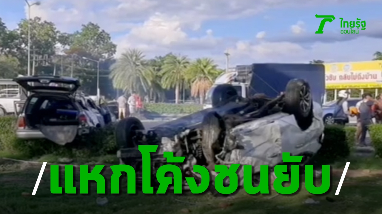 ปาเจโร่แหกโค้ง พุ่งข้ามสี่แยก ชนรถติดไฟแดงพังยับ 5 คัน ดับสลด 2 บาดเจ็บ 5 ราย พบคราบน้ำมันเป็นทางยาวบนผิวถนน คาดน้ำมันเครื่องอาจรั่ว เป็นเหตุลื่นไถล-คุมรถไม่อยู่ขณะเข้าโค้ง