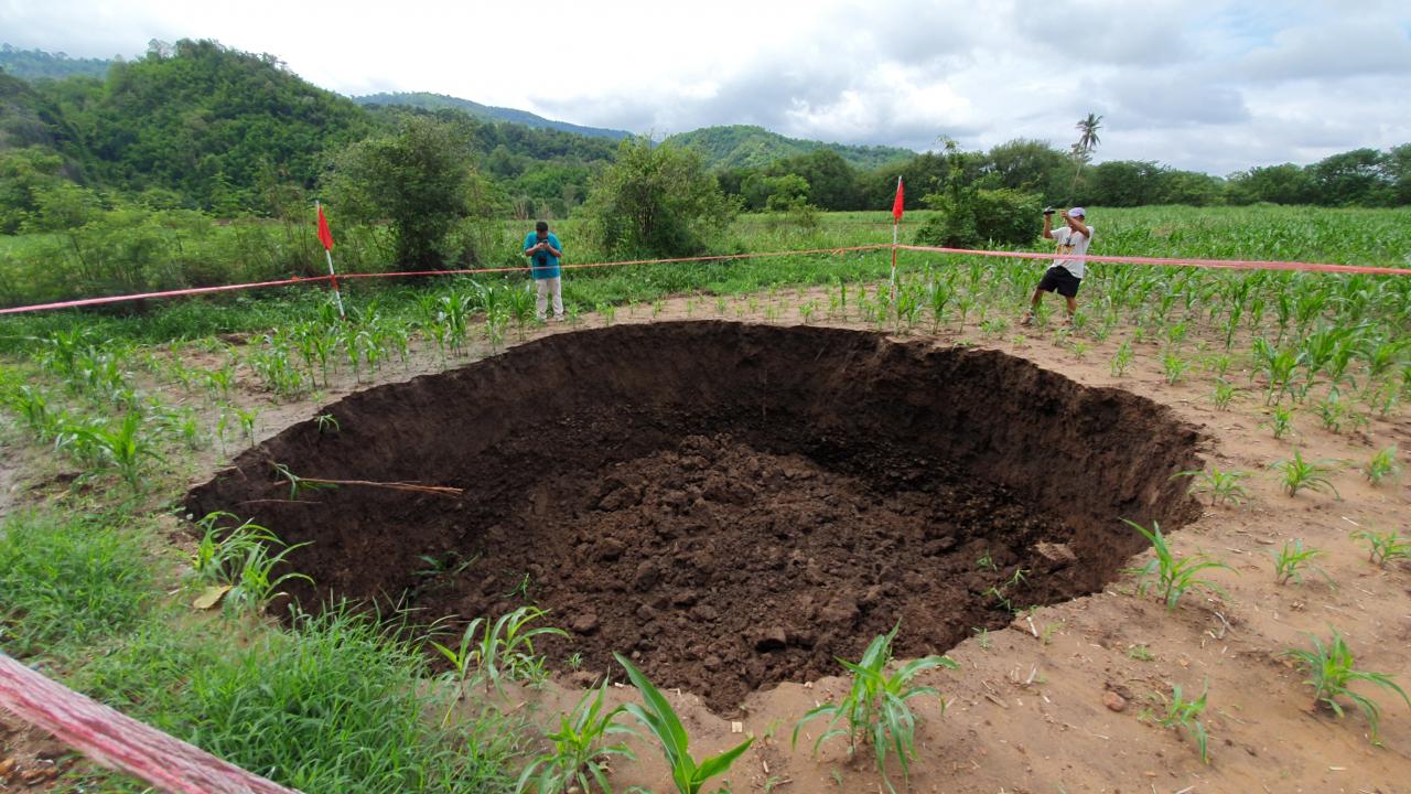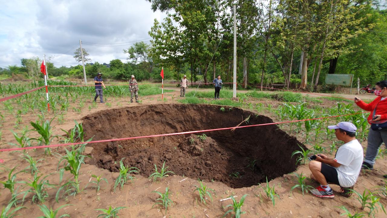 เกิดเหตุประหลาด หลุมยุบบริเวณไร่ข้าวโพดของชาวบ้าน อ.เนินมะปราง จ.พิษณุโลก ซึ่งอยู่ในเขตพื้นที่ของหน่วยพิทักษ์อุทยานทุ่งแสลงหลวง 6 โดยดินทรุดตัวเป็นวงกลมขนาดเส้นผ่าศูนย์กลาง 8 เมตร ลึก 3 เมตร คาดฝนตกหนักทำให้ชั้นดินอุ้มน้ำฝน หรือน้ำใต้ดินปริมาณมาก เกิดการกัดเซาะของชั้นหินปูนใต้กับผิวดิน ทำให้เกิดหลุมยุบตัวลงไป เป็นปรากฏการณ์ทางธรรมชาติ ซึ่งถือเป็นรั้งที่ 3 แล้วในพื้นที่