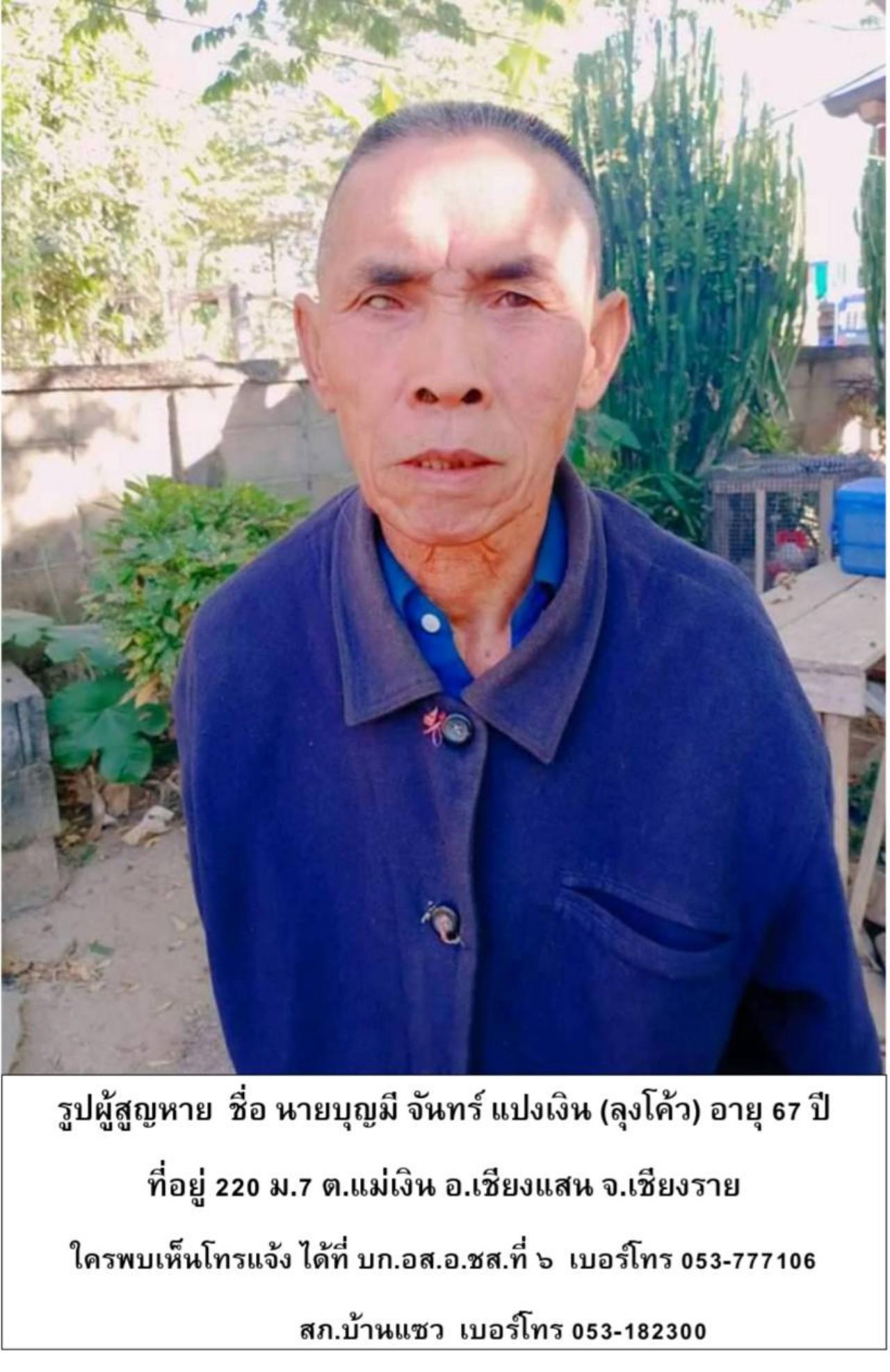 กรณี นายบุญมี จันทร์แปงเงิน อายุ 68 ปี ราษฎรบ้านไร่ พื้นที่หมู่ 7 ต.แม่เงิน อ.เชียงแสน จ.เชียงราย หายไปในป่าชุมชนบ้านไร่ แนวเขตติดต่อกับบ้านธารทอง อ.เชียงแสน จ.เชียงราย ตั้งแต่เมื่อ 21 มิ.ย. 2563