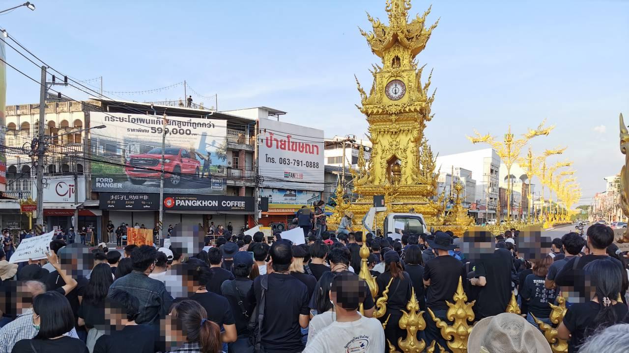 เมื่อเวลา 18.00 น.วันที่ 25 ก.ค.63 ที่หอนาฬิกา กลางเมืองเชียงราย ถ.บรรพปราการ อ.เมือง จ.เชียงราย มี น.ส.น้องแซน คน อ.พาน จ.เชียงราย เป็นนักศึกษาไม่แจ้งสถาบัน ถือโทรโข่ง เป็นแกนนำประกาศเรียกนักศึกษาส่วนมากแต่งชุดดำ ถือป้าย ออกมาชุมนุมกลางถนนโดยปิดถนน 1 เลน เรียกร้อง รัฐบาล 4 ข้อ มียกเลิก พ.ร.บ.ฉุกเฉิน ยุบสภา ลาออก ปัญหาราคาพืชผล การเกษตรตกต่ำ