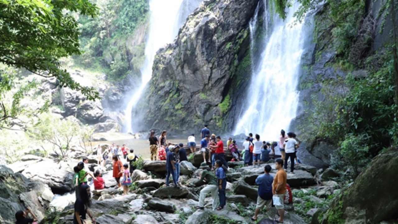 ที่แหล่งท่องเที่ยว น้ำตกคลองลาน อุทยานแห่งชาติคลองลาน อำเภอคลองลาน จังหวัดกำแพงเพชร บรรยากาศคึกคัก นักท่องเที่ยวทั้งชาวไทยและต่างชาติ เดินทางเข้าพักผ่อนเที่ยวชมน้ำตกช่วงวันหยุดยาวติดต่อกัน 4 วัน ท่ามกลางธรรมชาติที่เขียวขจี น้ำใสไหลเย็น เหมาะกับการพาครอบครัวมาพักผ่อนช่วงวันหยุด