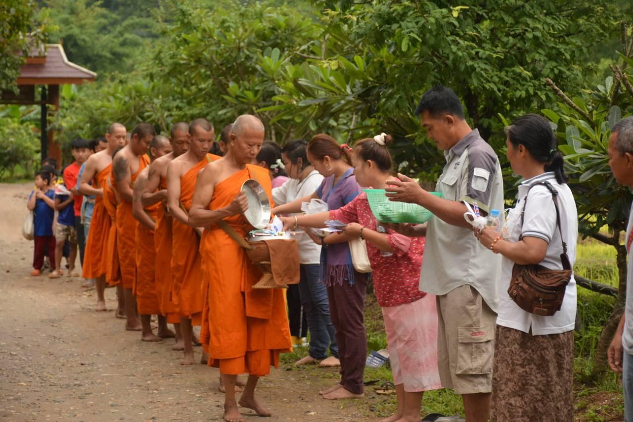 ชาวบ้านชนเผ่าปะหล่อง ตักบาตรพระสงฆ์ที่เคยเป็นควาญช้าง โดยมีช้างจากปางช้างแม่สา มารอใส่บาตรพระที่เป็นควาญของด้วย ที่บ้านโต้งหลวง หมู่ 9 ต.แม่แรม อ.แม่ริม จ.เชียงใหม่ ท่ามกลางธรรมชาติขุนเขา
