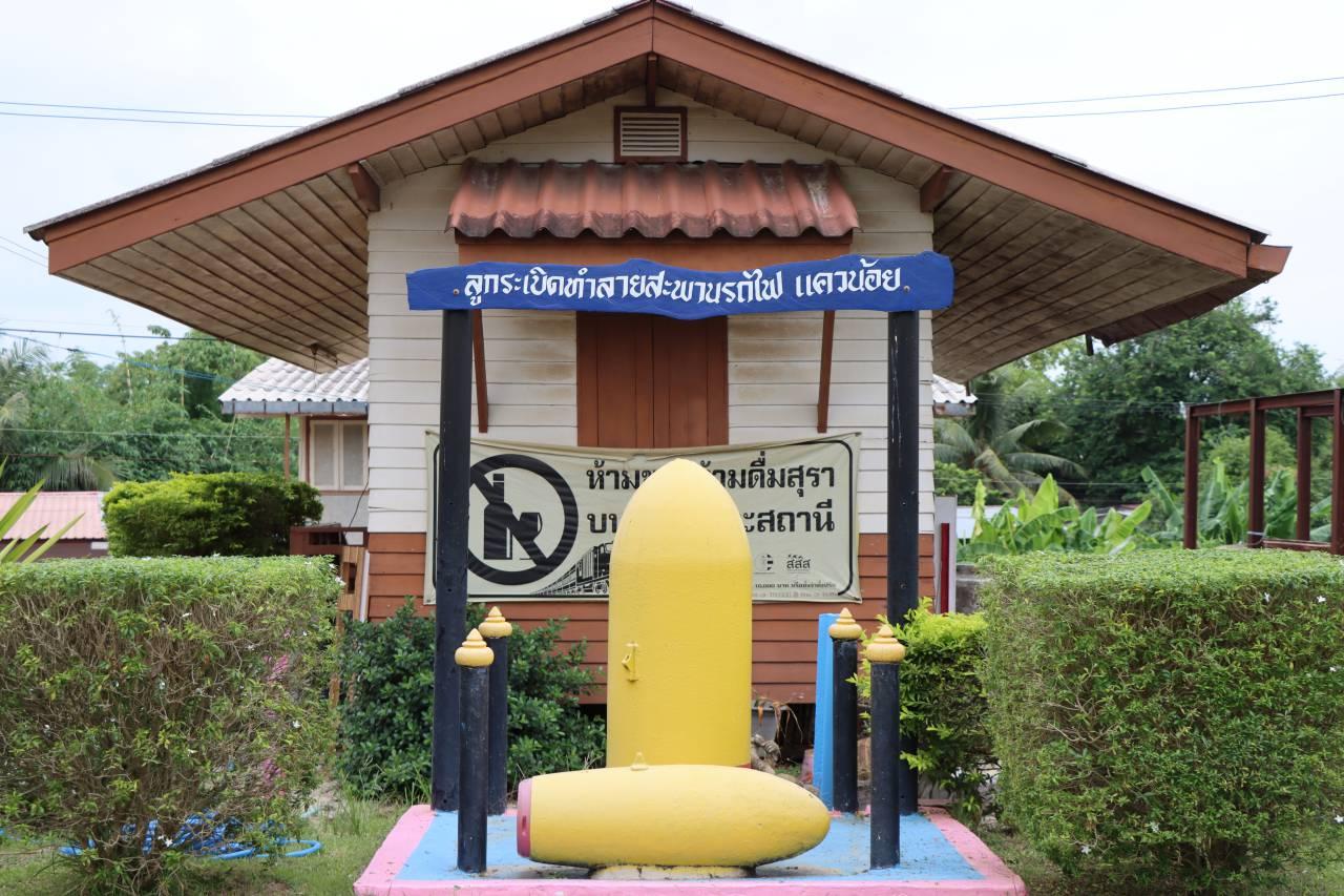 ลูกจ้างเฉพาะงานสถานีรถไฟแควน้อย กล่าวต่อว่า จนเมื่อเวลาล่วงเลยไปนานมาก และไม่มีการบันทึกไว้ ต่อมาชาวบ้านพบระเบิดขนาดใหญ่จำนวน 3 ลูก (ลูกใหญ่ 1 ลูก ลูกเล็ก 2 ลูก) จมน้ำในลักษณะเสื่อมสภาพในแม่น้ำแควน้อย ใกล้เคียงกับสะพานดำ จึงนำมาคว้านไส้ดินระเบิดด้านในออก และทาสีใหม่ ก่อนนำไปตั้งไว้ที่สถานีรถไฟแควน้อย เพื่อเป็นการรำลึกถึงเหตุการณ์สมัยสงครามโลกครั้งที่ 2 จนในเวลาต่อมาระเบิดได้หายไป 1 ลูก เหลือเพียงลูกใหญ่ 1 ลูก และลูกเล็ก 1 ลูกเท่านั้น