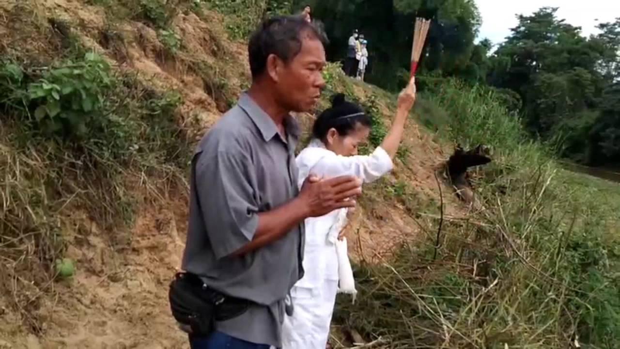 สักพักชายคนดังกล่าวก็ร้องไห้ออกมา และบอกว่า หลังตกลงไปก็เจอน้ำวน และตอนนนี้จมอยู่ที่ใต้น้ำ ติดกับกิ่งไม้ด้านใต้น้ำทำให้ร่างขึ้นมาไม่ได้ เพราะกิ่งไม้ทับ เมื่อชาวบ้านก็ถามว่าร่างอยู่ตรงจุดไหน ร่างทรงก็ชี้ไปทางบริเวณหน้าฝายน้ำล้น ซึ่งเป็นจุดที่พลัดตกลงไป จากนั้นก็มีการทำพิธีกรรม ด้วยการอ่านบทสวดมนต์มหาวิบากกรรม เพื่อขอให้เจ้าที่เจ้าทางปลดปล่อยร่างของผู้สูญหายออกมา ก่อนที่จะเอาน้ำขมิ้นส้มป่อยให้กับชายร่างทรงได้ลูบใบหน้า สักพักชายคนดังกล่าวก็ลืมตาขึ้นมา และแสดงอาการด้วยความมึนงง และถามว่า เกิดอะไรขึ้น ญาติจึงต้องการให้ค้นหานักประดาน้ำตรวจสอบที่จุดดังกล่าว โดยปฏิบัติการค้นหาผู้สูญหายวันนี้เข้าเป็นวันที่ 4 แล้ว.