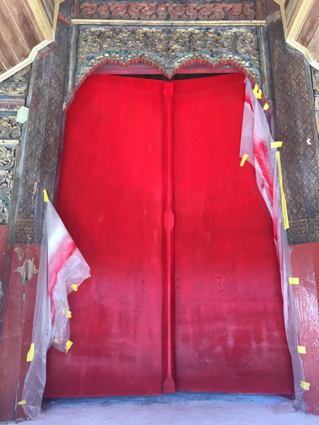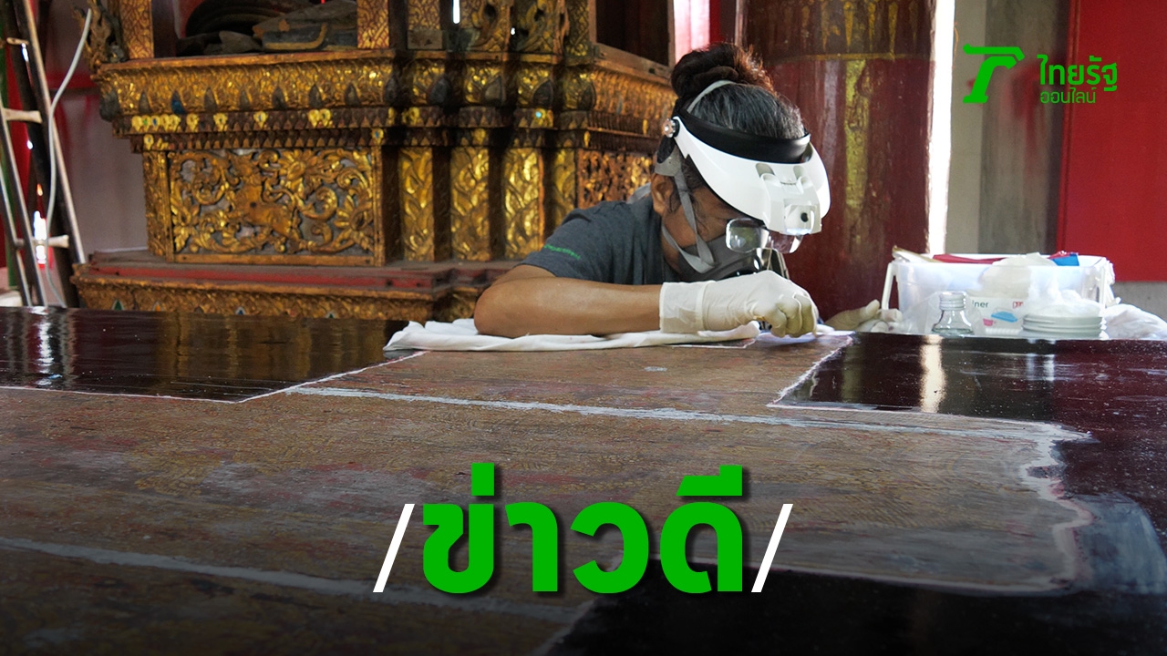 อวดโฉมอีกครั้ง ลวดลายภาพลายรดน้ำโบราณ บนประตูวิหาร วัดหมื่นล้าน จ.เชียงใหม่ กรมศิลป์กู้คืนภาพได้แล้วกว่าร้อยละ 40 คาดอีกหนึ่งเดือนเสร็จสมบูรณ์