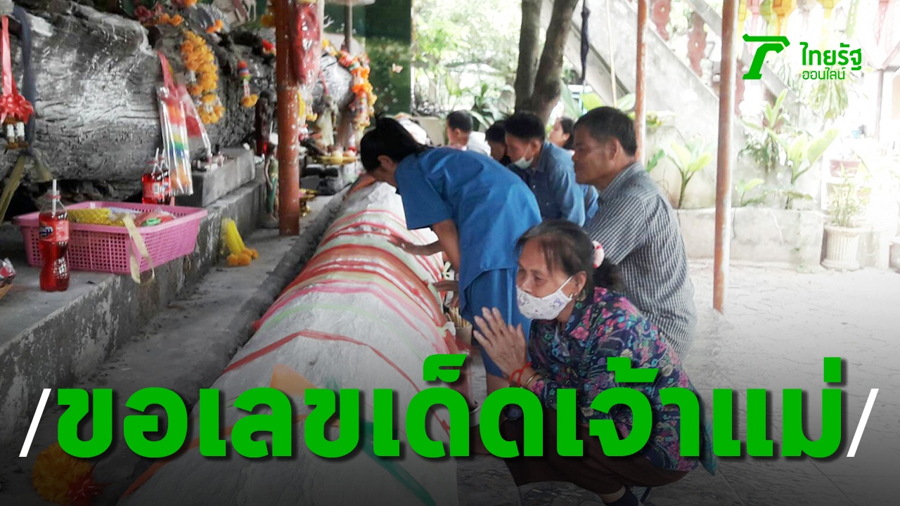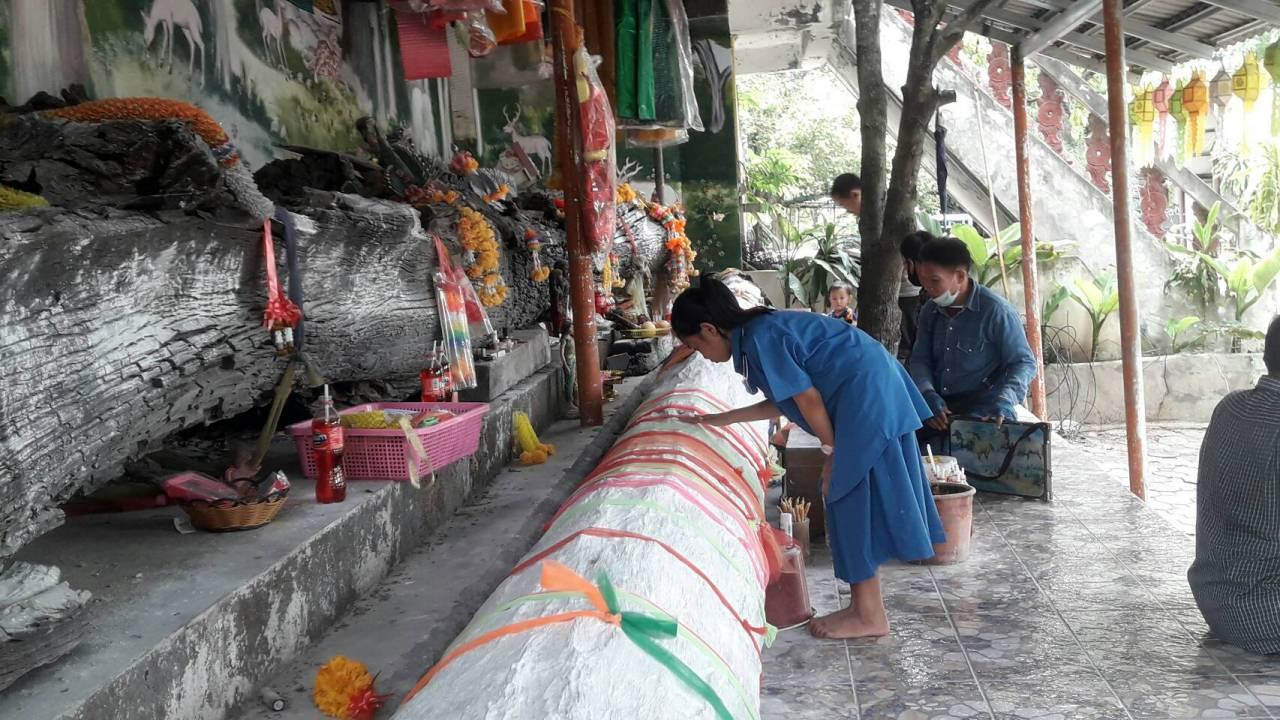 คอหวยแห่ขูดลูบหาตัวเลข เจ้าแม่ตะเคียนยักษ์ 2 ต้นใหญ่ยาวกว่า 6 เมตร ที่วัดดอยติ จ.ลำพูน หลังมีคนได้เลขถูกรางวัลที่ 2 หวังรับโชคถูกหวย ป้าจากพะเยามาขุดมองเห็นตัวเลขเด็ดงวดนี้เลขเดียวคือ 850